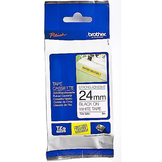 MediumDescription EN - Brother TZe-S251 black on white labelling Tape – 24 mm wide, 8 m long.