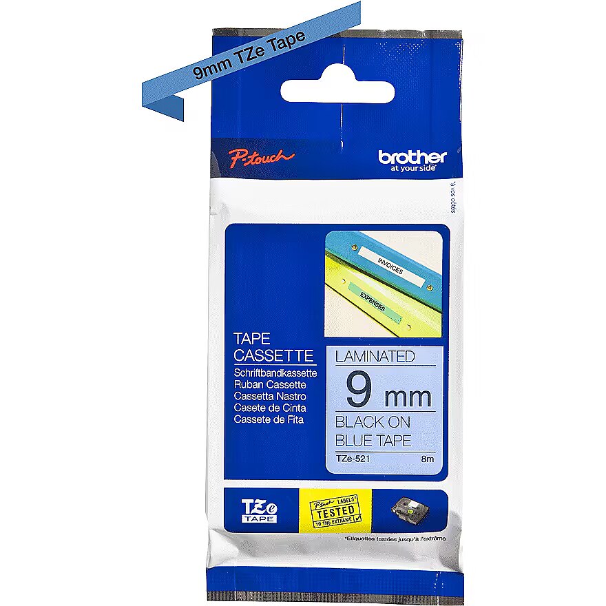 Description - BROTHER TZ521 9 BLACK ON BLUE