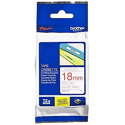 Description - BROTHER TZE242 18 RED ON WHITE