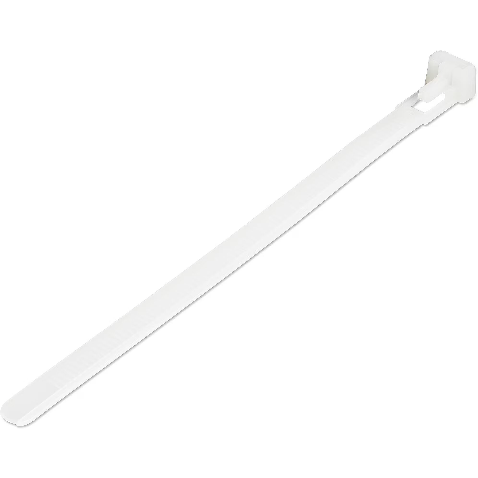 LongDesc - 100 Pack | Medium | Resealable | UL | TAAThese Medium Resealable Cable Ties enable you to conveniently bundle and secure multiple cables, to route and organize them. 100 White cable ties are included, ensuring you'll have plenty on hand.Reduce Waste and Keep Cables OrganizedThese plastic electrical cable wraps are resealable and reuseable, enabling you to remove the cable tie, and attach it to different bundle, add additional cables into your bundle, or reroute your cables at any time using the same cable ties, saving you time and cost, while reducing waste. The cable ties are 6" (15 cm) in length securing cable bundles up to 1.37" (35 mm) in diameter. They're quick and easy to install or remove, with adjustable tension and a basic one-piece design -- perfect for organizing network cables, power cables, or other cables at your home or office workstation.Industrial StrengthMade of durable Nylon 66 material, these cable ties are tough and flexible. They've been rigorously tested to support up to 50 lbs (22.7 kg) of weight & are UL94 V-2 fire rated, UL Approved, and CE & Lloyd's Register Certified.Available in Different Lengths and ColorsTo suite any application, StarTech.com offers a wide selection of these cable ties in different lengths and colors:100-pack - 5 in. (125 mm) White Cable Ties (CBMZTRB5)100-pack - 5 in. (125 mm) Black Cable Ties (CBMZTRB5BK)100-pack - 6 in. (15 cm) White Cable Ties (CBMZTRB6)100-pack - 6 in. (15 cm) Black Cable Ties (CBMZTRB6BK)100-pack - 8 in. (20 cm) White Cable Ties (CBMZTRB8)100-pack - 8 in. (20 cm) Black Cable Ties (CBMZTRB8BK)100-pack - 10 in. (25 cm) White Cable Ties (CBMZTRB10)100-pack - 10 in. (25 cm) Black Cable Ties (CBMZTRB10BK)These reusable cable wraps are backed by a StarTech.com Lifetime warranty and free 24/5 technical support. StarTech.com has been the IT professionals choice for over 30 years.The StarTech.com Advantage