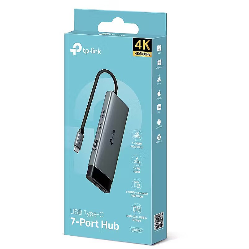 ShortSummaryDescription - TP-Link UH7020C, USB 3.2 Gen 1 (3.1 Gen 1) Type-C, HDMI, USB 3.2 Gen 1 (3.1 Gen 1) Type-A, USB 3.2 Gen 1 (3.1 Gen 1) Type-C, MicroSD (TransFlash), SD, 5000 Mbit/s, CE, FCC, RoHS, HDMI, BSMI, 127 mm