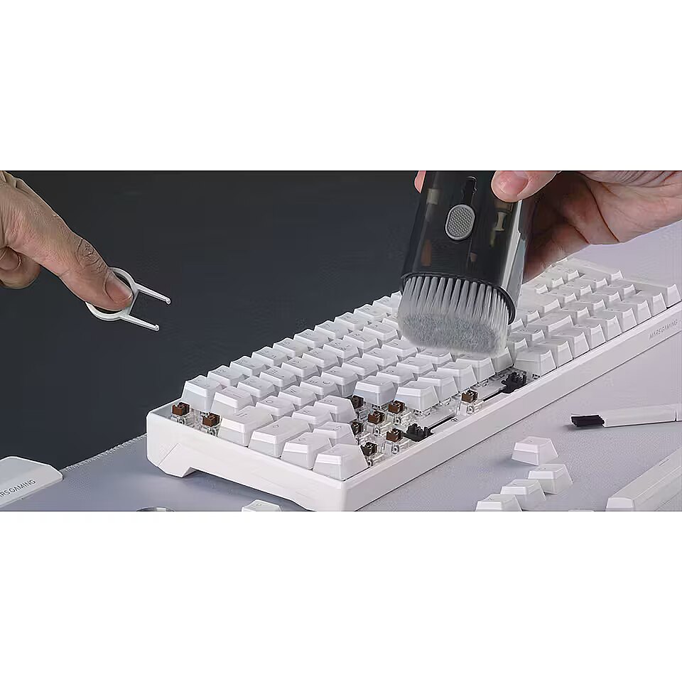 LongDesc - The MA-KIT 21-in-1 Cleaning Kit is the ultimate solution for maintaining your electronic devices. Designed for professional performance, it includes specialized tools for cleaning keyboards, screens, headphones, and more. Each accessory performs a specific function to keep your devices looking new by removing accumulated dirt, dust, and residue. With its compact and portable design, this kit is the perfect companion to take care of your devices on the go.All-in-one cleaning kitKeep your devices spotless with this complete cleaning kit. It includes tools such as high-density brushes, microfiber surface, cleaning pens, and key and switch pullers. Compatible with headphones, smartphones, tablets, laptops, monitors, and more. Organized in a compact case, it's ideal for use at home, in the office, or on the go, offering a one-stop solution for removing dirt and keeping your devices looking like new.Deep and detailed cleaningTake maintenance to the next level with specialized tools. - High-density brush: Designed to effectively remove dust and debris from the surface of your keyboard, leaving every key spotless. Take maintenance to the next level with specialized tools. - Key and switch puller: Perfect for mechanical keyboards, it facilitates the safe and quick disassembly of parts, allowing for deep cleaning. - Cleaning slots and small devices: The metal tip pen precisely removes stubborn dirt in earcups, slots, narrow edges and small gaps. The sponge brush effectively cleans compartments such as charging boxes and connections, while the mini brush is ideal for acoustic vents, ports and other limited-access areas.Specialized Care for Screens and LensesSafely protect and clean your screens with the microfibre surface included in the kit. Fill the spray bottle with your favourite cleaning fluid, lightly spray the screen and remove fingerprints and oil stains without worrying about damaging it. Perfect for monitors, tablets, mobile phones and camera lenses, it ensures a clean, scratch-free finish.