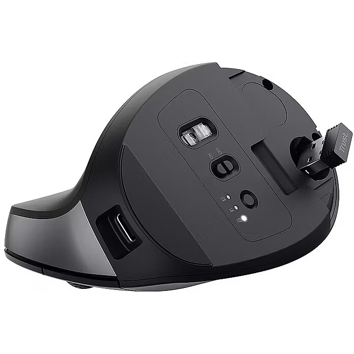 ShortSummaryDescription - Trust Bayo+, Right-hand, Vertical design, Optical, RF Wireless + Bluetooth, 2400 DPI, Black