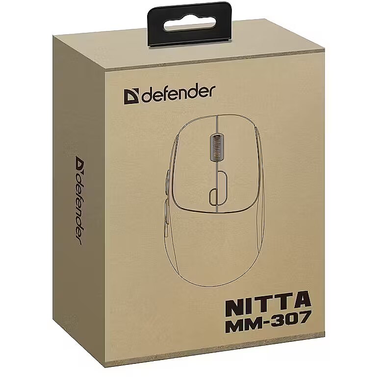 Description - Defender Nitta MM-307 RF+BT Optical Mouse - White, 1600 dpi, 6 Buttons Wireless optical mouse. Stylish office mouse with the ability to connect via Bluetooth or 2.4 GHz radio channel (USB adapter included). Features a built-in 400 mAh battery, 2 additional side buttons, 3 DPI modes, and Teflon feet for smooth gliding across the desk surface.