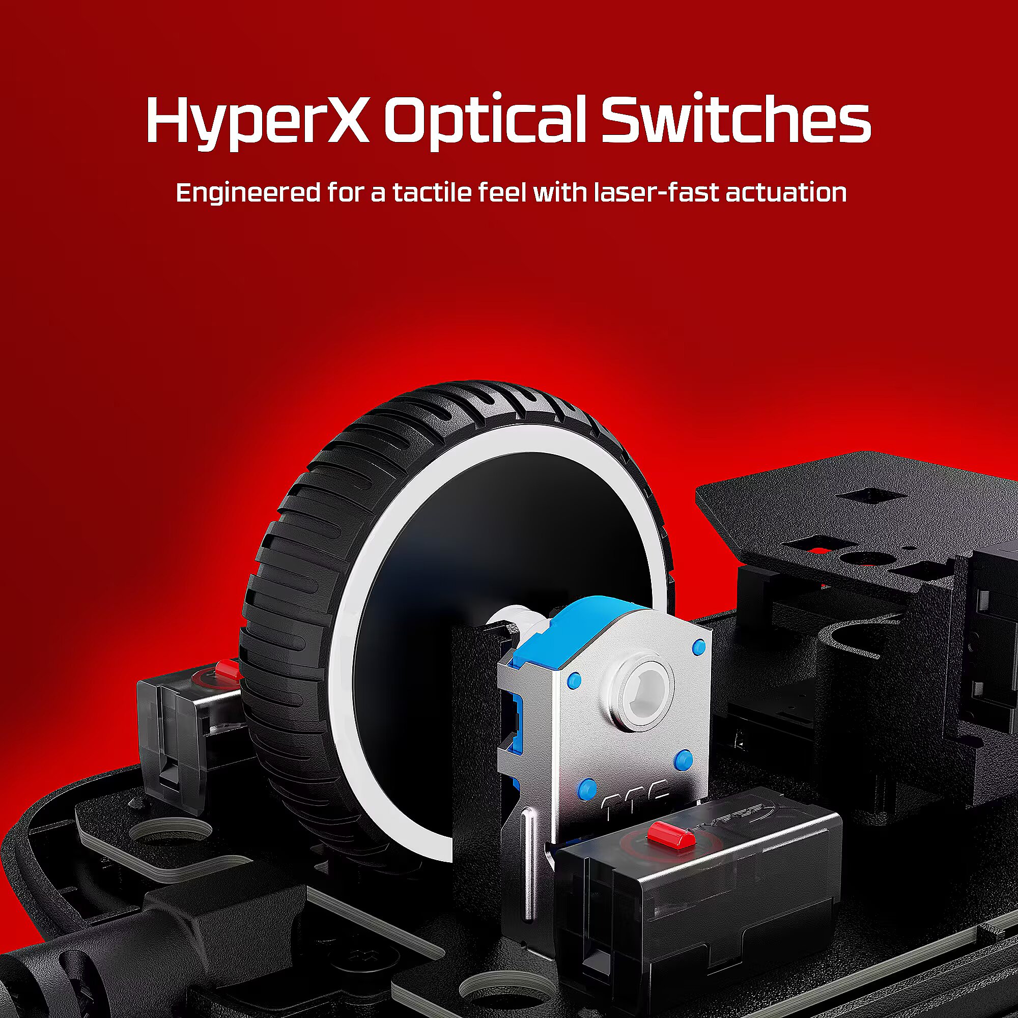 LongDesc - Play your waySay hello to HyperX’s most customizable gaming mouse: the Pulsefire Saga. This mouse uses ergonomically designed interchangeable components to adapt to different grip styles with up to 16 comfortable combinations. Simply swap out the magnetically mounted parts to find your perfect fit completely tool-free. Whatever configuration you choose, this mouse weighs in at only 69 grams, so you will never have to sacrifice agility for comfort. This mouse is equipped with an 8k polling sensor for ultra-fast, ultra-accurate reporting back to the CPU. The upgrades don’t stop there! Pulsefire Saga is also equipped with HyperX Optical Switches that balance laser-accurate actuation with a tactile click. While traditional switches require a mechanical contact as an input trigger, optical switches utilize a light-triggered mechanism that translates clicks to immediate actions. No debounce, no delays. Pulsefire Saga also uses the super light, super flexible HyperFlex 2 USB cable that resists snags and drags as you sweep around your mouse pad. The customization goes beyond the surface level. Connect to HyperX NGENUITY software to set motion tracking up to 26k DPI, remap buttons, adjust polling rate, set custom RGB effects, and analyze system input latency with NVIDIA Reflex compatible monitors.