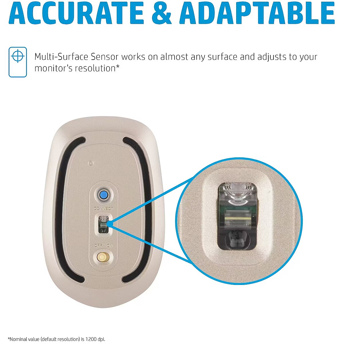 Multi-Surface Sensor works on almost any Surface and adjusts to your monitor's resolution.