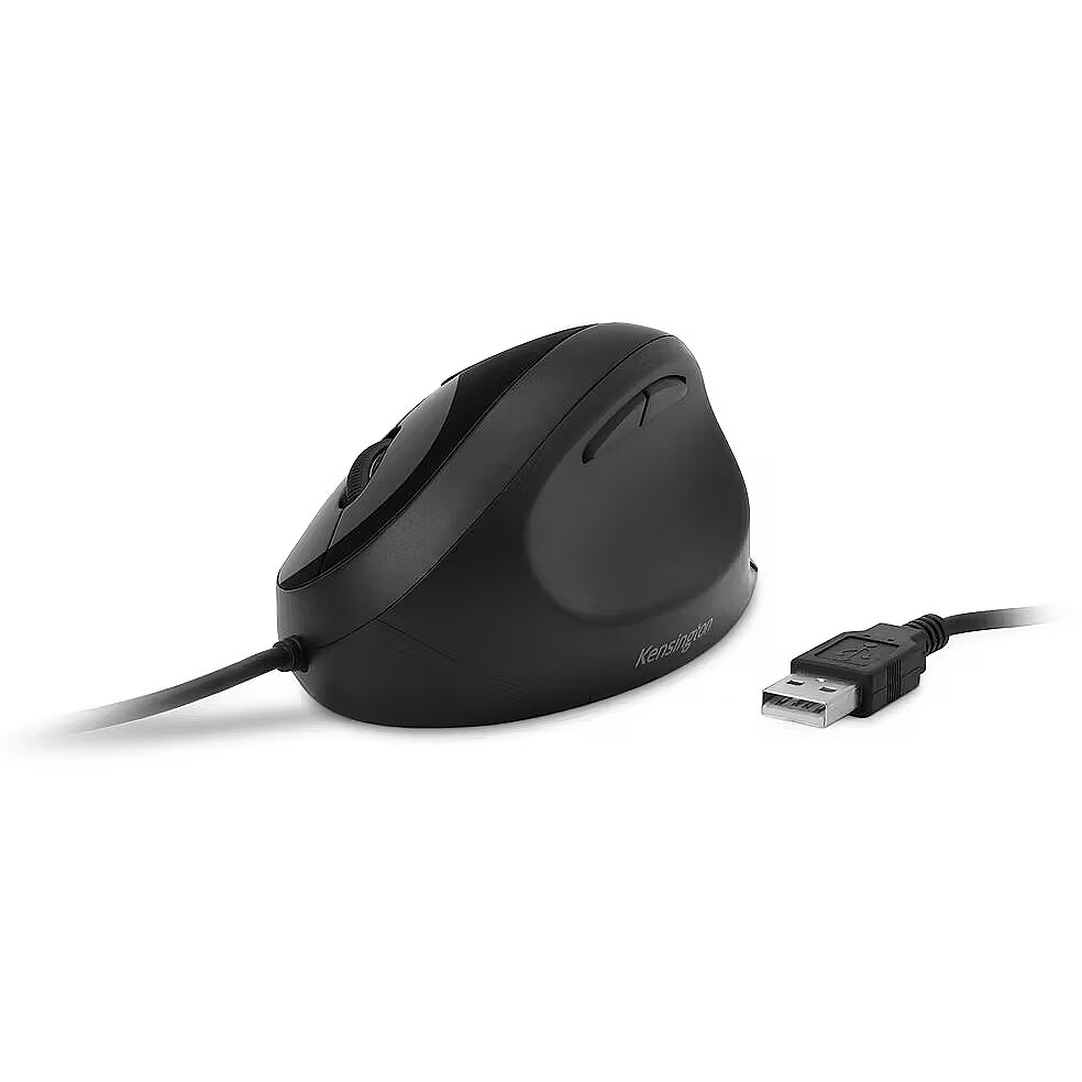 LongSummaryDescription - Kensington Pro Fit® Ergo Wired Mouse. Form factor: Right-hand. Movement detection technology: Optical, Device interface: USB Type-A, Movement resolution: 3200 DPI, Buttons type: Pressed buttons, Buttons quantity: 5, Scroll type: Wheel. Power source: Cable. Works on any surface. Product colour: Black