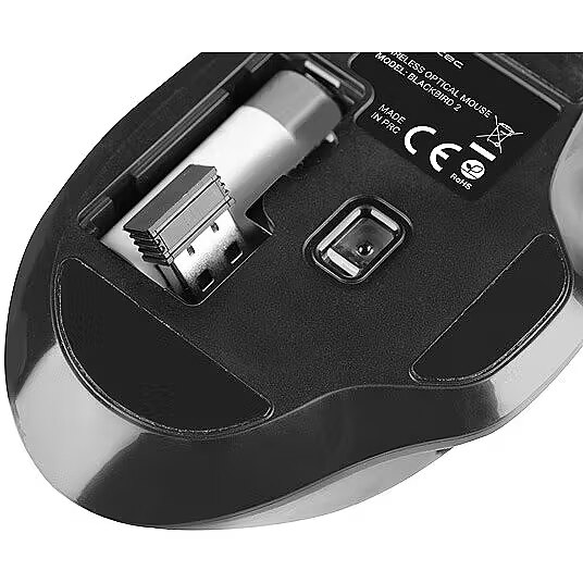 Other features > Special features - The mouse supports wireless technology with an operating range of up to 10 meters; At the heart of natec Blackbird 2 is a high-quality optical sensor with a resolution of up to 1600 DPI; The use of silent switches in all buttons has significantly reduced noise, so that the use of the mouse allows for greater focus and productivity
