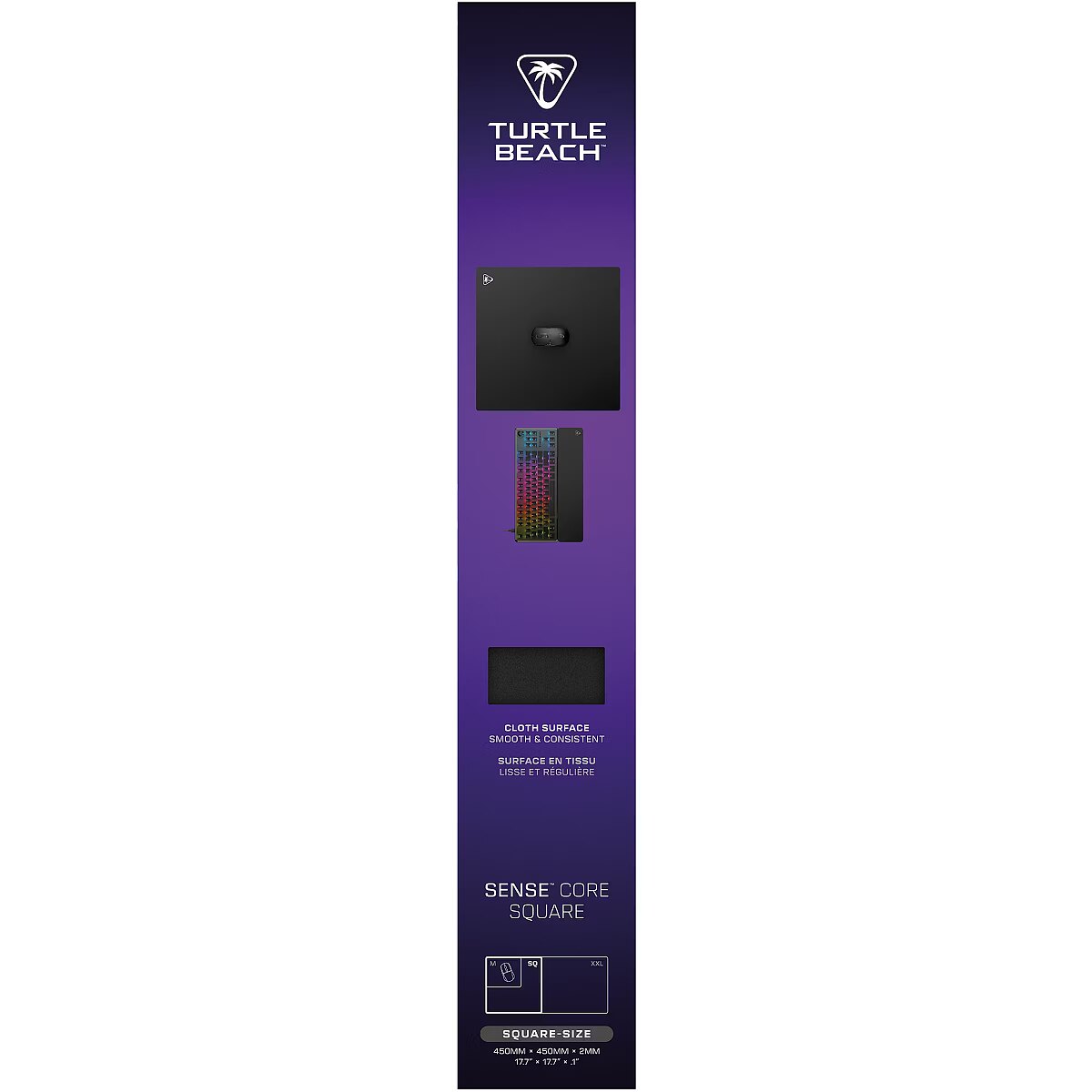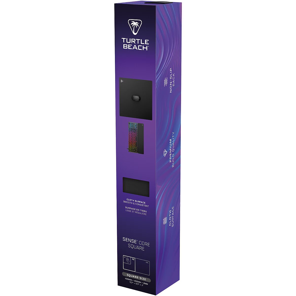 LongSummaryDescription - Turtle Beach Sense Core Square. Width: 450 mm, Depth: 450 mm. Product colour: Black, Surface coloration: Monochromatic, Material: Polyester, Rubber, Non-slip base, Gaming mouse pad