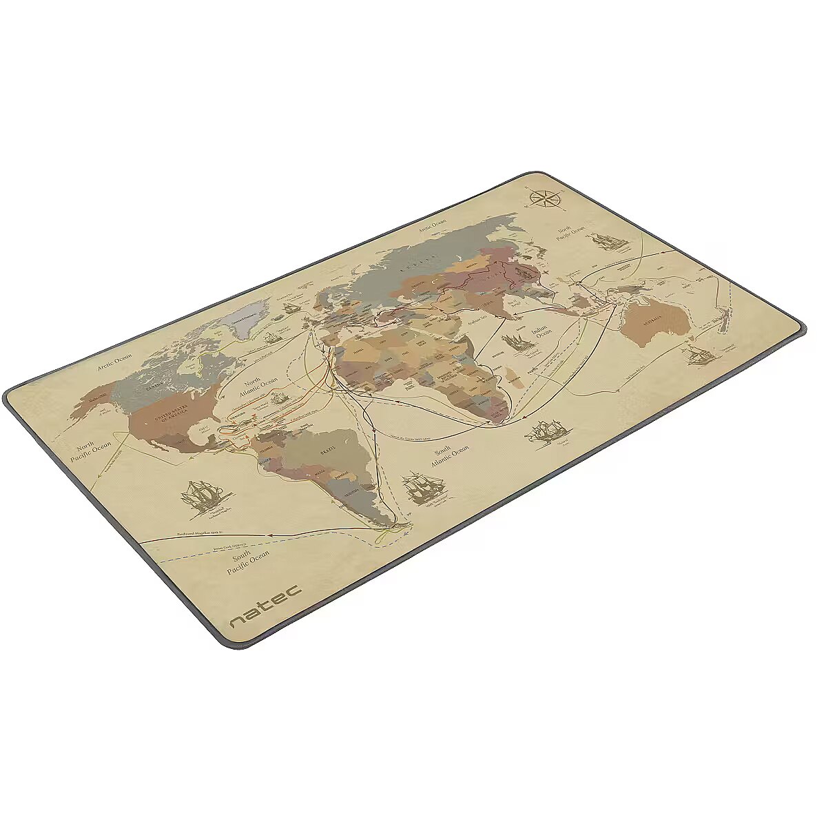 Description - DOSKONAŁA JAKOŚĆ WYKONANIA Wierzchnia warstwa wykonana z wodoodpornej tkaniny zapewnia wysoką precyzję śledzenia ruchów myszy optycznej i laserowej oraz redukuje tarcia o powierzchnię. Podkładka wyposażona jest również w antypoślizgową warstwę na spodzie, która zapobiega przesuwaniu się produktu. Obszyte krawędzie podkładki zabezpieczają ją przed zniszczeniem. UNIQUE AND PRACTICAL GRAPHICS The main feature of Natec Discoveries is the unique design with the current political map of the world along with the main expeditions of the era of the great geographical discoveries. The routes include the names of the explorers, the dates of individual expeditions and the names and sketches of flagships. Thanks to this, the pad not only facilitates the use of the mouse, but also helps during work, study or play. Unobtrusive colours and the vinatge style of the map make the pad an interesting complement to the interior design. EXCELLENT PERFORMANCE QUALITY The external waterproof layer of the pad was covered with a fabric providing the right precision in tracking mouse movements while reducing its friction. The bottom layer is covered with rubber, the task of which is to guarantee adhesion of the product. In addition, the low profile increases the comfort of using the mouse, but also helps during work, study or play.