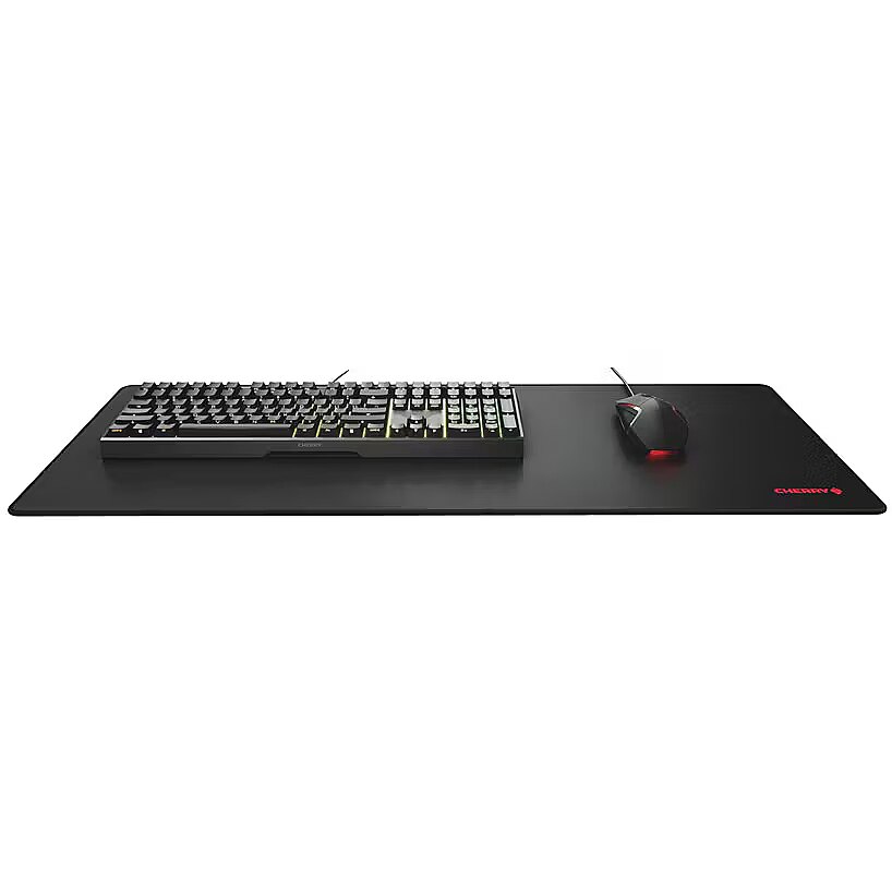 LongDesc - Large or small?Whether it’s a question of space or style of use, you can choose just the right pad to suit your needs. The CHERRY MP 2000 PREMIUM MOUSEPAD XXL is a desk pad where the keyboard and mouse get plenty of space. The ideal gaming pad! The CHERRY MP 1000 PREMIUM MOUSEPAD XL, on the other hand, is a classic mouse pad. Both mouse pads are suitable for all mouse sensors. Jumping mouse pointers and missed keystrokes are now things of the past.Ideal PC equipment for work and gamingIts smooth surface allows your mouse to slide fluidly over the mouse pad, and it’s quiet and easy to clean. It’s perfect for spills – you can simply wipe the keyboard and mouse pad dry or clean it by hand. Thanks to its rubberized base, the mat won’t slip off your desk and a special border prevents the mouse pad from fraying. Do you like a little change of scenery now and then? No problem: Thanks to the flexible fabric design, the mouse pads roll up easily for transport.