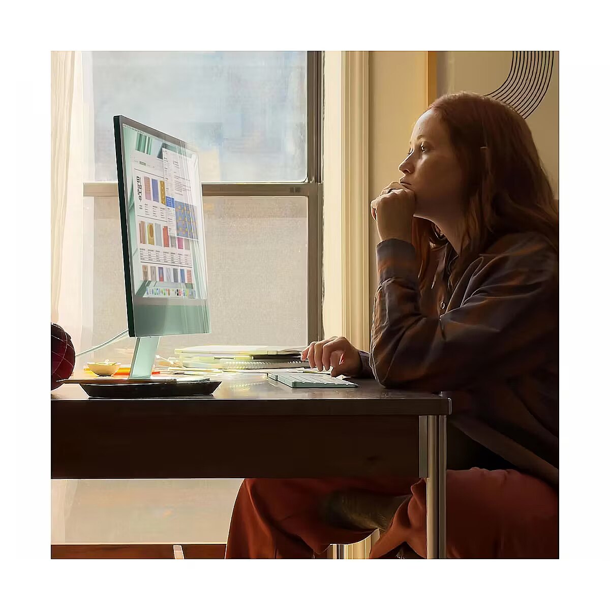 The foundation of this extraordinary design is Mac's powerful M3-generation chip. It brings together the processor, graphics, memory, and much more onto a single chip. Thanks to this, we were able to fit the entire computer into an incredibly compact form. The result is an iMac that fits practically anywhere. Enjoy a big picture with all the details.