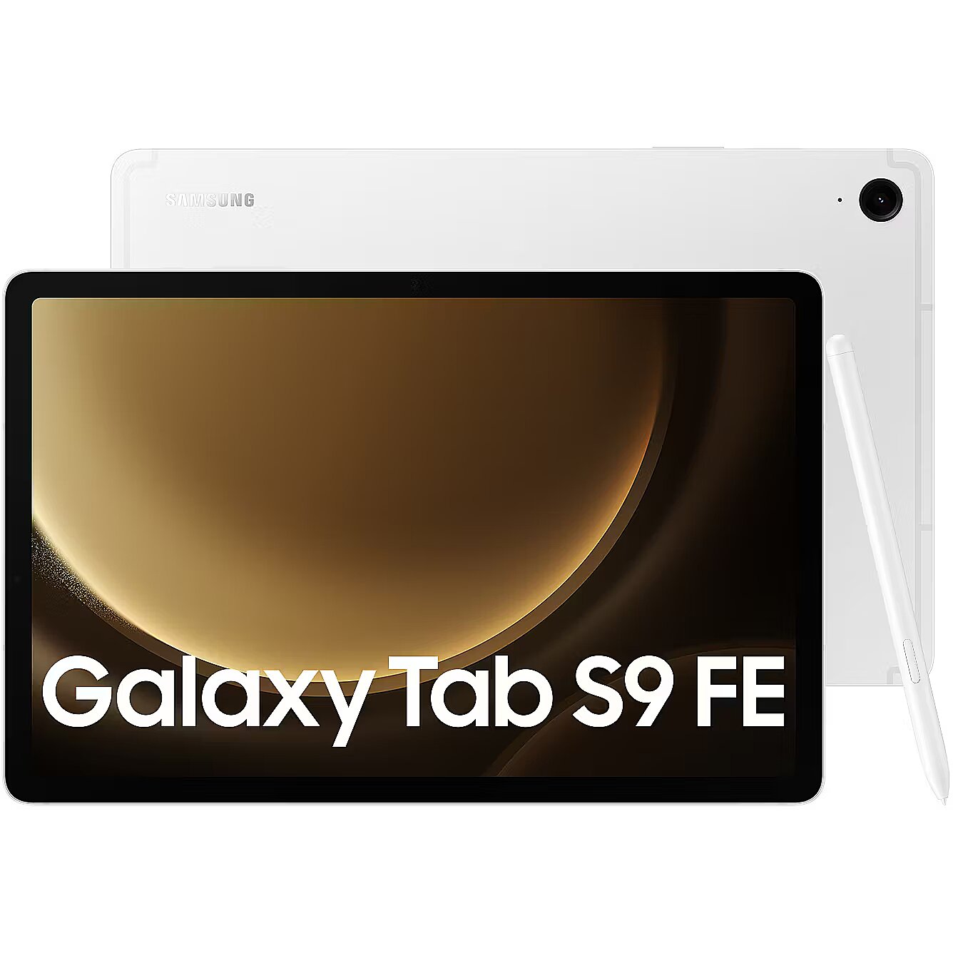 LongSummaryDescription - Samsung Galaxy Tab S9 FE S9 FE. Display diagonal: 27.7 cm (10.9"), Display resolution: 2304 x 1440 pixels. Internal storage capacity: 128 GB. Processor frequency: 2.4 GHz, Processor family: Samsung Exynos, Processor model: 1380. Internal memory: 6 GB. Rear camera resolution (numeric): 8 MP, Rear camera type: Single camera, Front camera resolution (numeric): 12 MP. Top Wi-Fi standard: Wi-Fi 6 (802.11ax). Card reader integrated. Weight: 523 g. Operating system installed: Android 13. Product colour: Silver