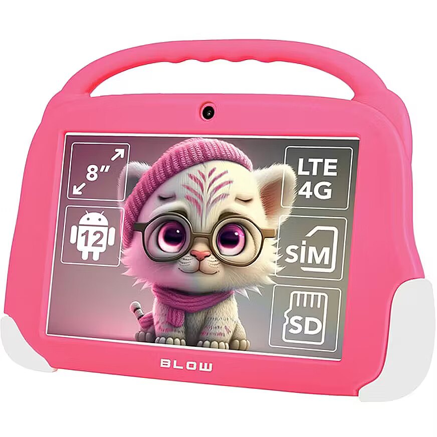Description - The children's tablet is a safe and educational device that develops the skills of the little ones. With interactive games, apps and multimedia materials, it supports creativity, logical thinking and the development of cognitive skills. The robust casing protects against damage and parental controls allow you to block content and time of use. The perfect way to combine fun and learning! Key features: Capacitive 8-inch FHD 1280x800 screen Powerful 8-core T606 processor 5.0 MP front, 8.0 MP rear cameras Bluetooth v5.0, Wi-Fi 802.11 b/g/n/ac (2.4G + 5G) 4G LTE / 3G / 2G network connectivity 4 GB RAM, 64 GB internal memory Android 12 Robust casing to protect against damage MicroSD card slot (up to 128GB) Built-in GPS receiver Connectors: Mini Jack 3.5mm, USB Type-C Polish MENU Compatibility with Disney+, YouTube, Netflix, HBO Max, Amazon Prime applications