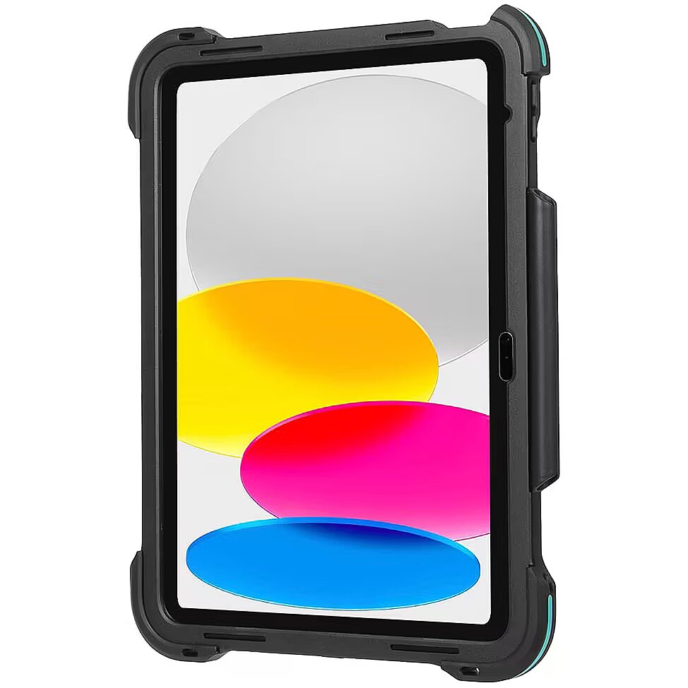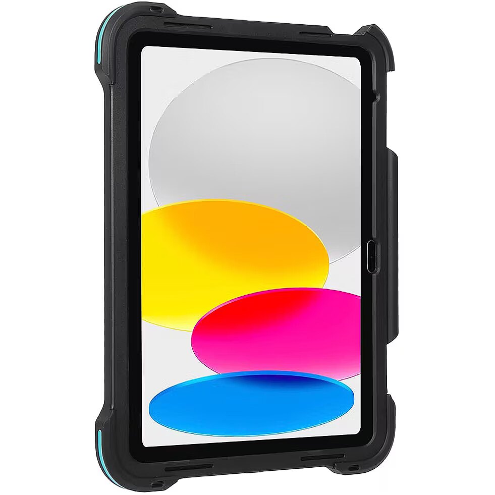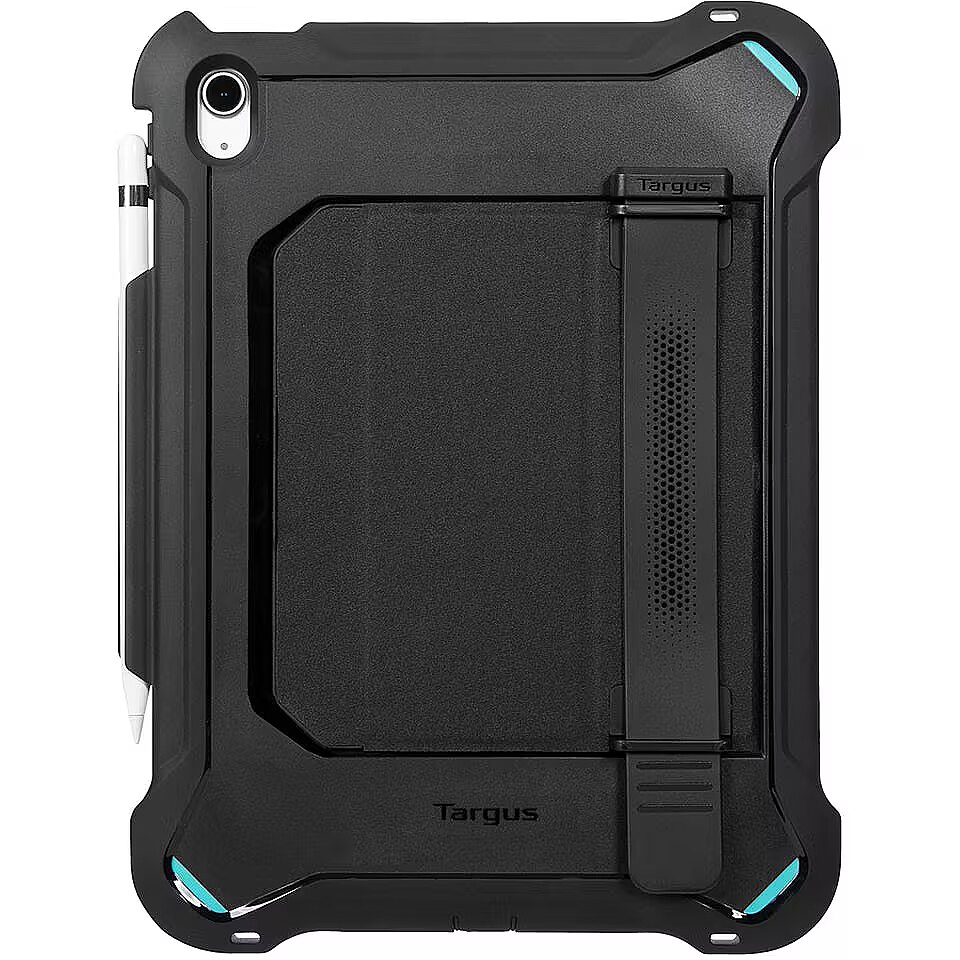 LongDesc - With all-around protection that stands up to military-grade drop testing, the Targus® SafePort® Slim for iPad® (10th gen.) 10.9-inch is made to withstand sudden drops and accidental slips.Whether you’re traveling, in the office, or at a remote job site, the Targus® SafePort® Rugged Max Case for iPad® (10th gen.) 10.9-inch provides ultimate coverage and maximum protection for your iPad. Featuring BlueShock™ Protection, an advanced, lightweight triple-layer corner protection system, this case is thoroughly tested to meet the rigorous mil-spec (MIL-STD-810G) standards that protect from harsh environmental conditions, sudden drops, and accidental slips.* It’s designed with an integrated, bezel-free screen protector, and silicone port covers to protect the audio and power ports when necessary. You can rest assured this rugged case provides the best, all-around protection from everyday use, water, drops, dust, or force.Versatile and hassle-free, the case has a built-in stand for multiple viewing and typing positions, which seamlessly slides open with one hand and sits firmly on nearly any surface thanks to its hinge-less design. Connect the silicone hand strap and your iPad becomes more accessible and secure than before.BlueShock™ TechnologyProtect your tablet without the bulk. Using an impact-absorbing polymer, Targus incorporated Blue Shock Technology — a triple over-mold corner protection system into its tablet cases that’s designed to protect your device when and where it needs it most. It’s purposefully constructed to absorb the shock of accidental drops, yet thin enough to keep the weight and bulk out of your case. Externally tested against the competition, our cases with Blue Shock Technology are up to 30% more impact-resistant while up to 40% lighter in weight!Military Grade ProtectionMinor drops and bumps are no problem for this sturdy, structured case. In fact, the case passes rigorous MIL-STD-810G testing to ensure it can protect your iPad® from drops up to 4 feet (1.2 meters).Full Access, Full FunctionalityThe custom-fit tray has precision cutouts for full access to the buttons, controls, and port. Camera and sensor cutouts ensure you get the best shot — even with the case on.​Worry-Free ProtectionThis case is backed by Targus lifetime warranty. Targus warrants the case from defects in workmanship and materials under normal use.Integrated Stand for Adjustable AnglesWith an integrated stand, you can adjust the viewing angle without removing the case. It seamlessly slides open with one hand. Thanks to its hinge-free design, it’s also less likely to break when dropped.