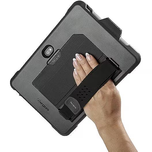 LongDesc - Keep your Tab Active Pro protected with the Field-Ready Tablet Case for Samsung Galaxy Tab Active Pro. With its two-piece over-moulded shell and shock-absorbent TPU edges, the case meets the rigorous MIL-STD-810G* standards that protect from harsh sudden drops and accidental slips.Integrated features like a detachable hand strap, slide-in storage for a stylus, and asset tag window deliver convenience and practicality for added productivity. Designed to work with the Targus Tablet Cradle (AWU202GLZ, sold separately), the tablet case seamlessly slides into the cradle to transform your tablet into a desktop experience for increased productivity.