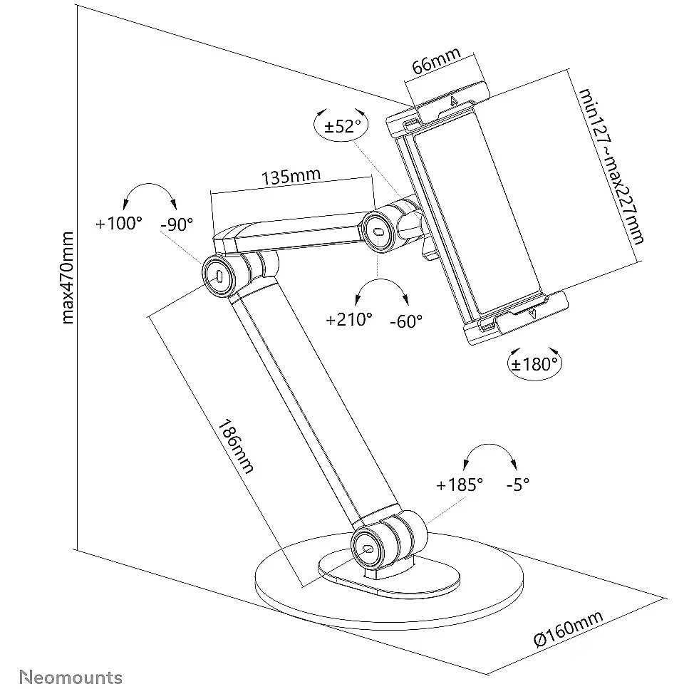 ShortSummaryDescription - Neomounts DS15-550BL1 Tablet stand 4.7-12.9" - universal, 32.8 cm (12.9"), 11.9 cm (4.7"), Black, Steel, 0 - 270°, 360°