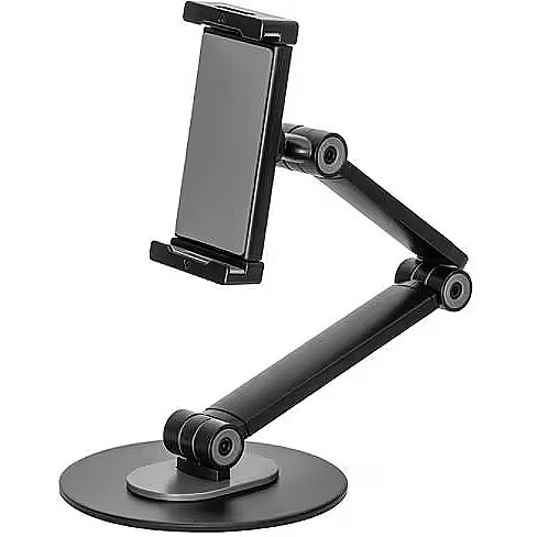 LongDesc - The Neomounts DS15-550BL1 is an universal tablet stand for tablets from 4,7" up to 12,9" with a weight capacity of 1 kg. The tablet stand has 3 pivoting points and is ideal for hands-free video calling, watching a movie or playing a game.The integrated ball joint allows the stand to rotate 360° so you can switch between portrait and landscape position. Additionally, the clever tilt (270°) and swivel (104°) options allow the stand to further change to the ideal viewing angle. Soft rubber pads protect your device from any scratches and the solid base with anti-skid silicon pads ensure solid positioning of your device.