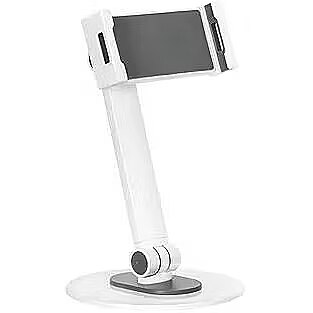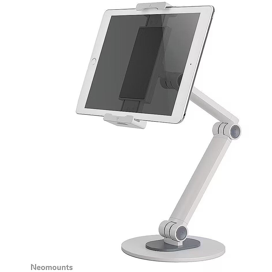 LongDesc - The Neomounts DS15-550WH1 is an universal tablet stand for tablets from 4,7" up to 12,9" with a weight capacity of 1 kg. The tablet stand has 3 pivoting points and is ideal for hands-free video calling, watching a movie or playing a game.The integrated ball joint allows the stand to rotate 360° so you can switch between portrait and landscape position. Additionally, the clever tilt (270°) and swivel (104°) options allow the stand to further change to the ideal viewing angle. Soft rubber pads protect your device from any scratches and the solid base with anti-skid silicon pads ensure solid positioning of your device.