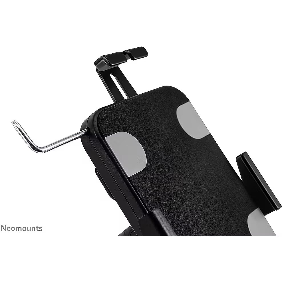 LongDesc - The Neomounts FL15-625BL1 is a tablet floor stand that can rotate 360° to easily switch between portrait and landscape orientation. Additionally, the tablet holder can be tilted +20°/-110° for comfortable viewing. Using the sliding rail at the back, the tablet can be perfectly aligned in the centre of the holder. The floor stand features an anti-theft lock and a bolt-down base for extra security. Anti-skid pads protect the tablet from any scratches, while the height and width adjustable clamps ensure safe and solid placement of the device. The upper part has a cutout for the tablet's camera. Cables can be neatly routed via the internal cable management system. The FL15-625BL1 is suitable for tablets with a thickness of 0-8,5 mm.