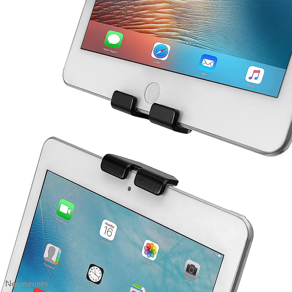 The FL15-625BL1 model accommodates tablets ranging in thickness from 0 to 8.5 mm, making it compatible with a wide range of devices. The Neomounts FL15-625BL1 stand is an excellent solution for home and office use, as well as in public spaces where safety and aesthetics are paramount.