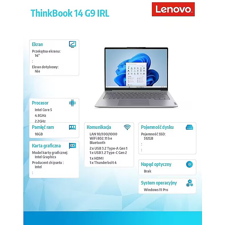 name - Laptop ThinkBook 14 G9 21UY007EPB W11Pro Core 5 210H/16GB/512GB/INT/14.0 WUXGA/Luna Grey/3YR OS + 1YR CI + CO2 Offset