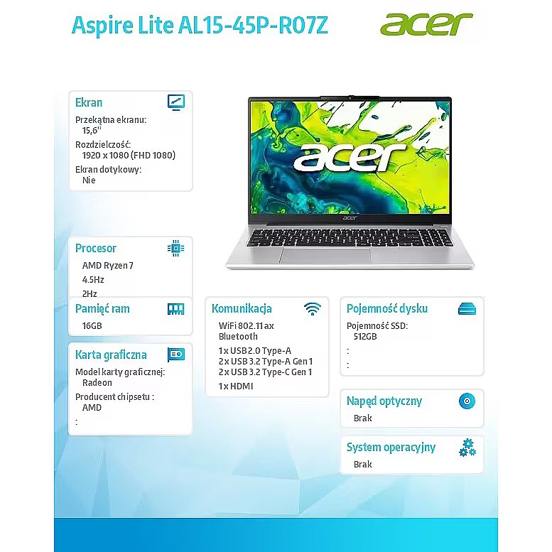 name - Laptop Aspire Lite Ryzen7 5825U 15.6FHD 16GB 512G
