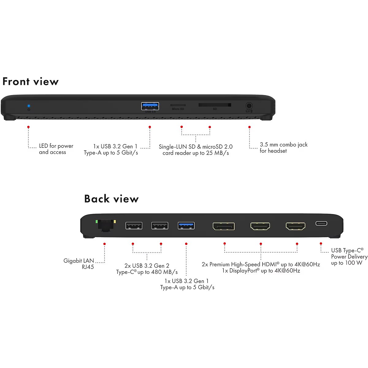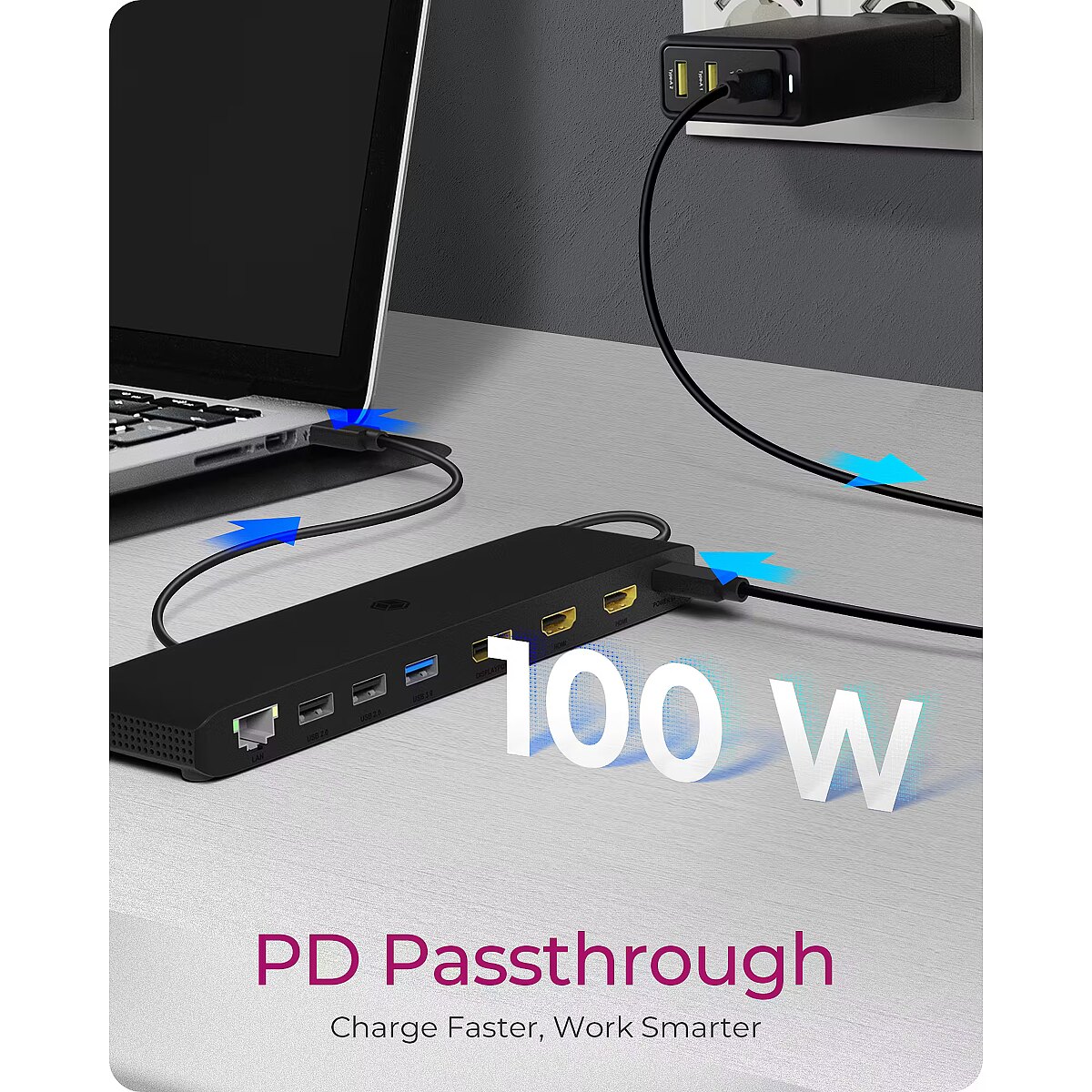 LongDesc - Ultra-Definition DisplayExperience stunning visual quality with 4K resolution at 60 Hz up to 3 monitors, delivering crisp images and exceptional detail for all your work and entertainment needs.Triple Display SupportBoost your productivity by connecting up to three external monitors, providing an expansive workspace for seamless multitasking and improved efficiency.For Professionals and Home Office UsersDesigned with professionals and home office users in mind, the DockingStation enhances productivity and efficiency, making it the ideal choice for your demanding workflow.