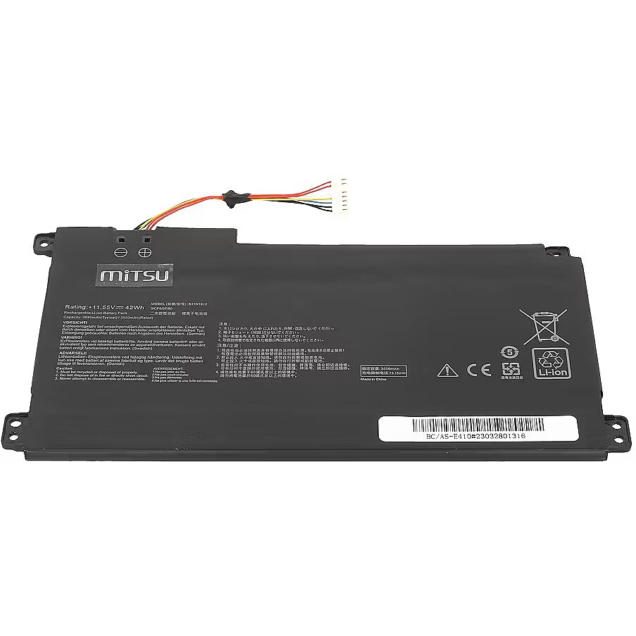 Replaces batteries - 0B200-03680000, 0B200-03680200, 3ICP5/57/80, B31N1912, C31N1912, Model BC/AS-E410 FITS FOR: Asus Vivobook series E410KA, E410KA-EK139TS, E510KA, E510KA-EJ033TS, E510MA, F414MA, L510MA, R522MA, VivoBook 14 series E410MA, E410MA-BV1169TS, E410MA-EK007TS, E410MA-EK017TS, E410MA-EK018TS, E410MA-EK026TS, E410MA-EK028TS, E410MA-EK087T, E410MA-EK211T, E410MA-EK319T, E410MA-EK32 1T, E410MA-EK327TS, E410MA-EK367TS, E410MA-EK378T, E410MA-EK505T, E410MA-EK542T, E410MA-EK946TS, E410MA-EK991TS, L410MA, L410MA-BV037TS, L410MA-BV053TS, L410MA-BV058TS, L410MA-BV076TS, L410MA-BV077 TS,