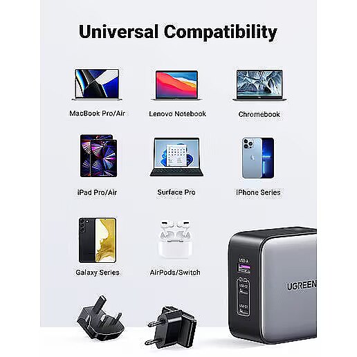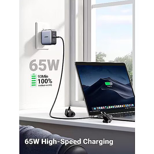 Title - Ugreen 65W Nexode GaN Headset, Mobile phone, Laptop, Smartwatch, Tablet Grey USB Fast charging Indoor