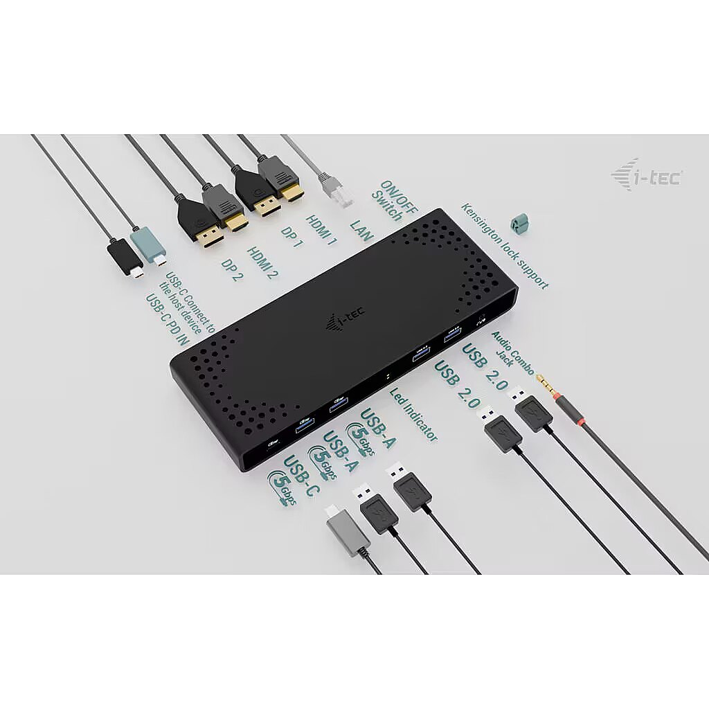 i-tec Universal Dual 4K Display Docking Station 2xDP 2xHDMI LAN Audio Power Delivery 85W + i-tec USB-C Charger 100W - Stacja dokująca