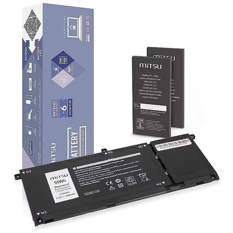 Description - Wysoka jakość w rozsądnej cenie, bezpieczeństwo i ekologia to cechy baterii MITSU, które doceniły już tysiące Europejczyków, głównie w Polsce, Czechach i na Słowacji. Jest ona efektem połączenia najlepszych komponentów z dbałością o każdy etap procesu produkcji, wspartą nieustanną kontrolą jakości, a także naciskiem na bezpieczeństwo urządzenia. MITSU to: Wysokiej klasy, sprawdzone, ekologiczne ogniwa litowo-jonowe klasy A, Rzeczywista deklarowana pojemność, Znacznie wolniejszy spadek nominalnej pojemności w porównaniu do innych tańszych zamienników, Niska podatność na samoistne rozładowania, Brak efektu pamięci, Fabryczne zabezpieczenia przed przeładowaniem i głębokim rozładowaniem, a także przed przepięciem OVP, przegrzaniem OTP, zwarciem SCP i przeciążeniem prądowym OCP, Niezawodny i długotrwały czas między kolejnymi cyklami ładowania, 6-stopniowa kontrola jakości. Kupując ten akumulator do laptopa masz także pewność, że jednocześnie dbasz o środowisko naturalne. Producent ściśle współpracuje z organizacjami zajmującymi się szeroko pojętą edukacją ekologiczną, wspierającymi selektywną zbiórkę oraz maksymalny odzysk odpadów. Baterie MITSU to produkty opatrzone certyfikatami CE, ROHS oraz ISO9001 Zamienne z modelami 0H5CKD 9077G H5CKD TXD03 Kompatybilne z Dell seria Inspiron 13 7306 13 7306 (2652) 13 7306 (2669) 13 7306 (2690) 13 7306 (5981) 13 7306 (5998) 13 7306 (6TYH5) 14 5400 2-in-1 14 5401 14 5401 (XCNV7) 14 5402 14 5402 (0W6MX) 14 5402 (G9WN6) 14 5402 (J82J2) 14 5402 (PXPGN) 15 5501 15 5502 15 5502 (7JVW5) 15 5505 15 5505 (14CHP) 15 5505 (RGK24) 15 5505 (TFPNC) 15 7506 15 7506-CVDMH 5401 5402 5502 5505 seria Latitude 14 3410 14 3410 (5H9F6) 14 3410 (CGD7T) 14 3410 (CJXF9) 14 3410 (DRXPX) 14 3410 (F51RF) 14 3410 (HTXHD) 14 3410 (Y41TT) 15 3510 15 3510 (08HDJ) 15 3510 (18R0D) 15 3510 (2GMKN) 15 3510 (3JHKR) 15 3510 (802CM) 15 3510 (CR1V9) 15 3510 (DXVM6) 15 3510 (F9TTD) 15 3510 (FJW4Y) 15 3510 (KMX32) 15 3510 (NDFFG) 15 3510 (NK2MC) 15 3510 (PCDRY) 3120 3410 3510