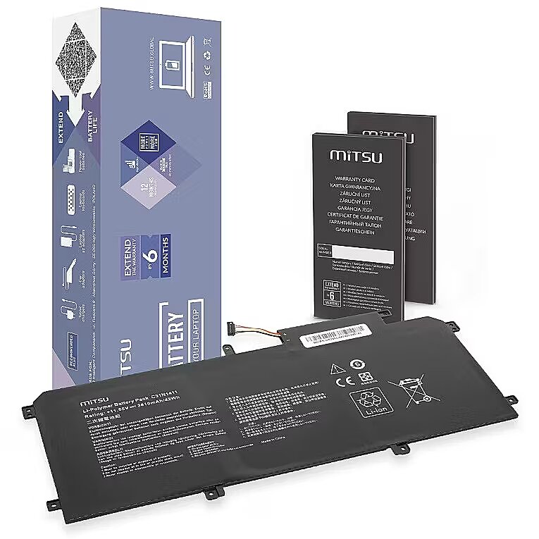 Description - Wysoka jakość w rozsądnej cenie, bezpieczeństwo i ekologia to cechy baterii MITSU, które doceniły już tysiące Europejczyków, głównie w Polsce, Czechach i na Słowacji. Jest ona efektem połączenia najlepszych komponentów z dbałością o każdy etap procesu produkcji, wspartą nieustanną kontrolą jakości, a także naciskiem na bezpieczeństwo urządzenia. MITSU to: Wysokiej klasy, sprawdzone, ekologiczne ogniwa litowo-jonowe klasy A, Rzeczywista deklarowana pojemność, Znacznie wolniejszy spadek nominalnej pojemności w porównaniu do innych tańszych zamienników, Niska podatność na samoistne rozładowania, Brak efektu pamięci, Fabryczne zabezpieczenia przed przeładowaniem i głębokim rozładowaniem, a także przed przepięciem OVP, przegrzaniem OTP, zwarciem SCP i przeciążeniem prądowym OCP, Niezawodny i długotrwały czas między kolejnymi cyklami ładowania, 6-stopniowa kontrola jakości. Kupując ten akumulator do laptopa masz także pewność, że jednocześnie dbasz o środowisko naturalne. Producent ściśle współpracuje z organizacjami zajmującymi się szeroko pojętą edukacją ekologiczną, wspierającymi selektywną zbiórkę oraz maksymalny odzysk odpadów. Baterie MITSU to produkty opatrzone certyfikatami CE, ROHS oraz ISO9001. Zamienne z modelami 0B200-01180000 0B200-01180100 C31N1411 Kompatybilne z Asus seria Zenbook U305FA5Y71 UX305C UX305CA UX305CA-1A UX305CA-1B UX305CA-1C UX305CA-2A UX305CA-2C UX305CA-3C UX305CA-DHM4T UX305CA-EHM1 UX305CA-FB031T UX305CA-FB052T UX305CA-FB055T UX305CA-FB073T UX305CA-FB219T UX305CA-FC004T UX305CA-FC022T UX305CA-FC037T UX305CA-FC042T UX305CA-FC074R UX305CA-FC093T UX305CA-FC094T UX305CA-FC167T UX305F UX305FA UX305FA(MS)-FC066H UX305FA(MS)-FC066P UX305FA-1A UX305FA-1B UX305FA-1C UX305FA-2A UX305FA-FB003H UX305FA-FB003T UX305FA-FB006H UX305FA-FB006T UX305FA-FB012H UX305FA-FB033H UX305FA-FB126H UX305FA-FB128H UX305FA-FB128T UX305FA-FB142H UX305FA-FB186H UX305FA-FB191H UX305FA-FB192T UX305FA-FC002H UX305FA-FC004H UX305FA-FC004T UX305FA-FC005T UX305FA-FC008H UX305FA-FC014H UX305FA-FC066P UX305FA-FC158T UX305FA-FC159T UX305FA-FC190H UX305FA-FC225T UX305FA-FC284T U305C U305CA U305CA6Y30 U305F U305FA U305FA5Y10 U305FA5Y71 U305U U305UA UX305C UX305CA UX305F UX305FA UX305FA-1A UX305FA-2A