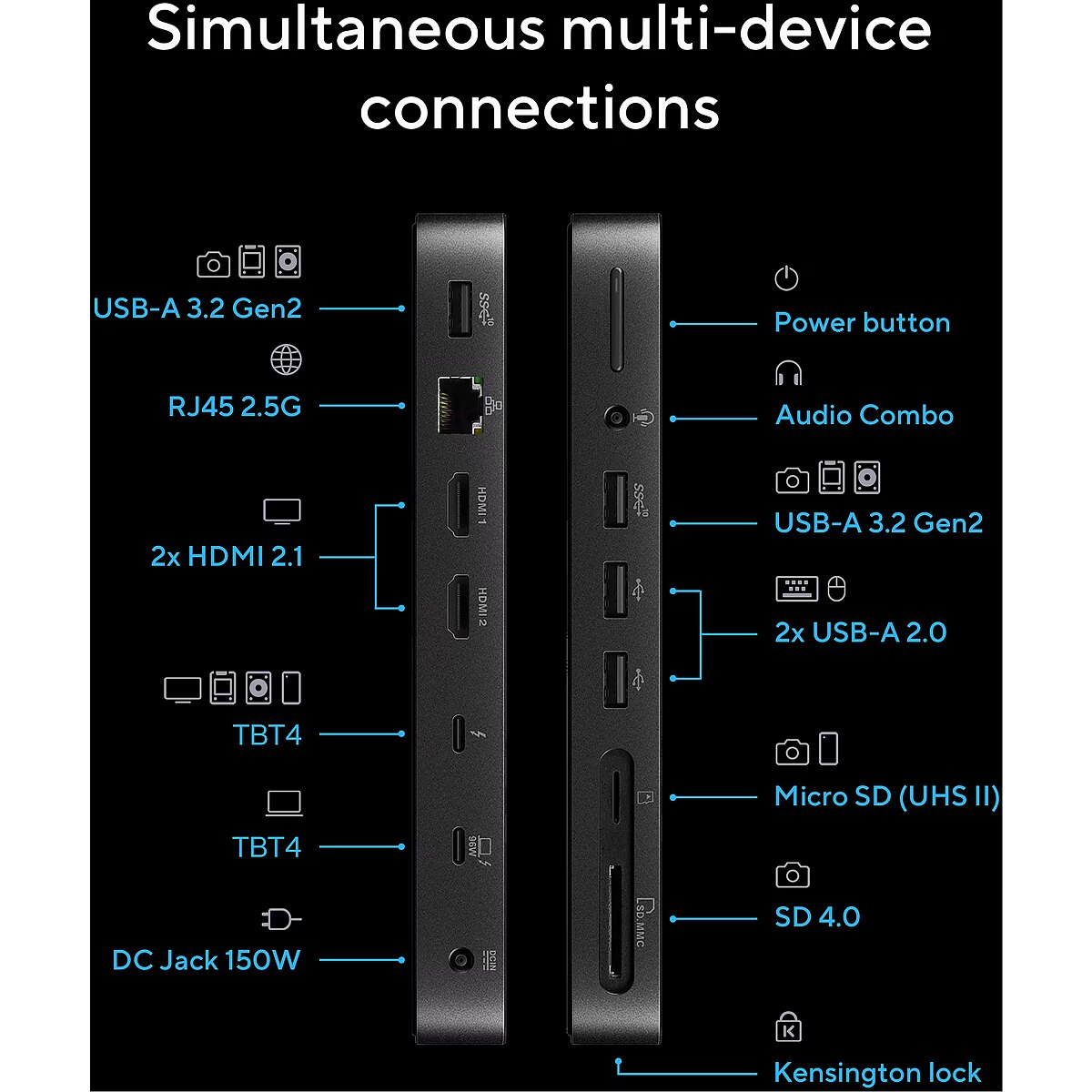 LongProductName - HDMI, Thunderbolt 4, SD/Micro SD, USB-A, RJ-45, UK power cord