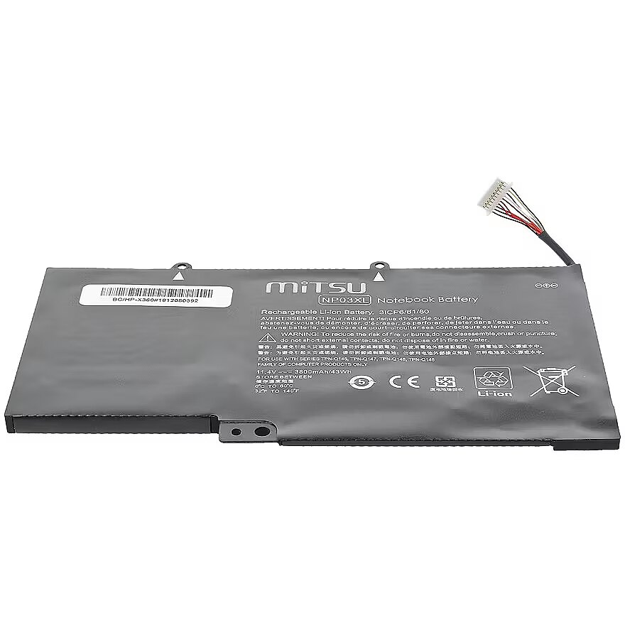 Replaces batteries - 760944-141, 760944-221, 760944-241, 760944-421, 760944-421-18, 760944-541, 761230-005, HP011401-PRR13G01, HSTNN-LB6L, HSTNN-UB6L, J8C75PA, NP03, NP03043XL, NP03043XL-PR, NP03XL, NPO3, NPO3XL, TPN-Q146, TPN-Q147, TPN-Q148, TPN-Q149,