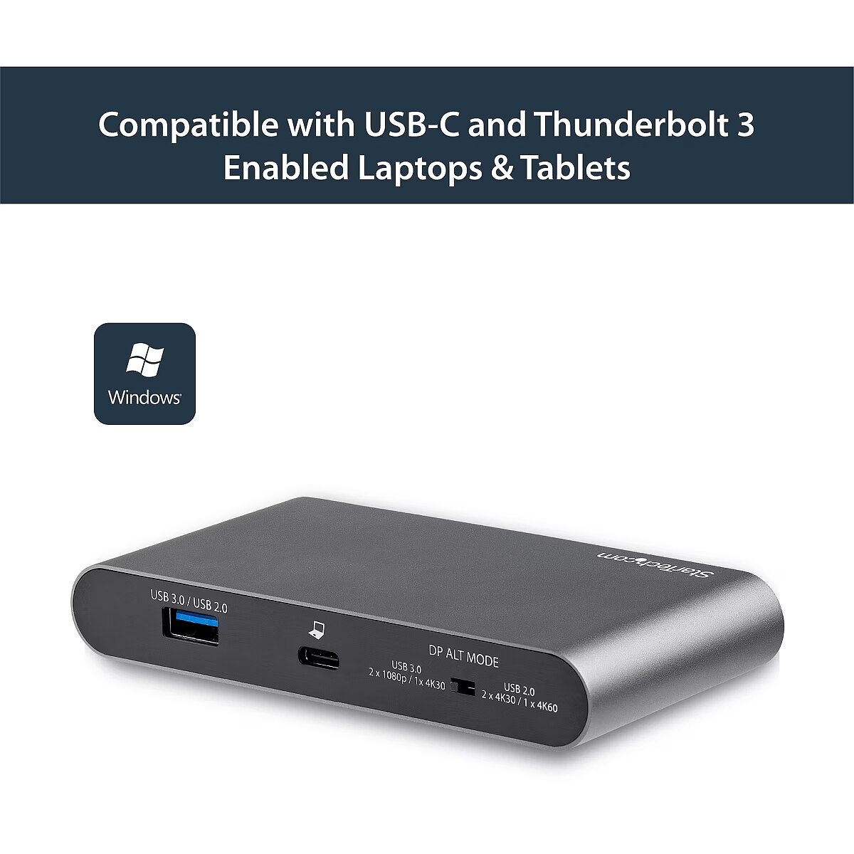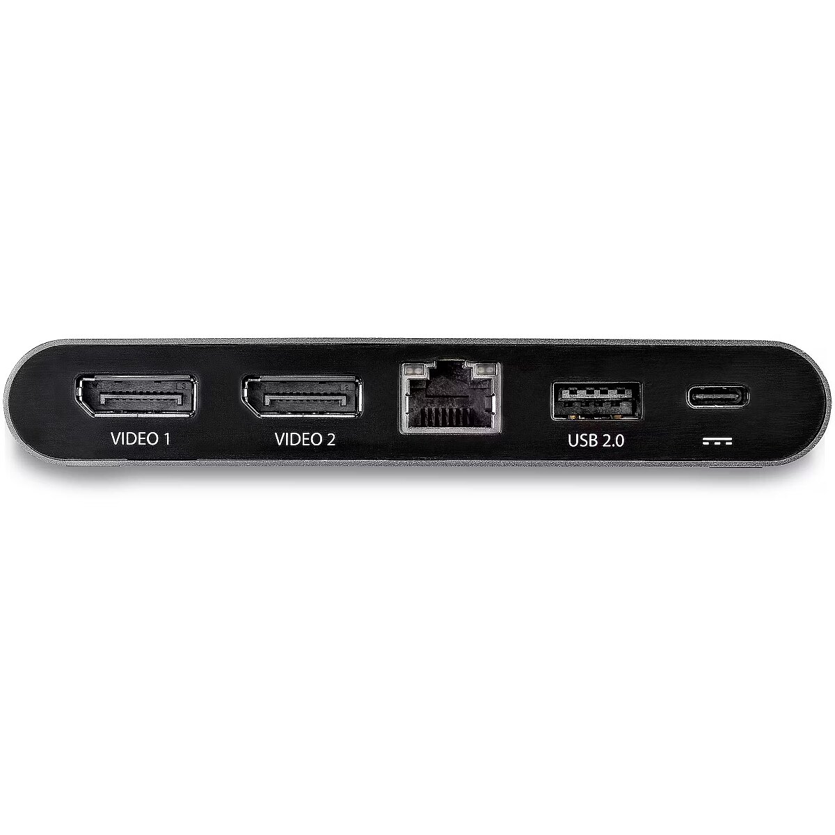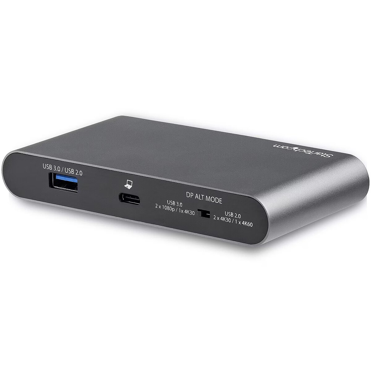 LongDesc - USB C Multiport Adapter | 4K 30Hz | 100W PD 3.0 | 2 USB A Ports | GbE | DP Alt-Mode SwitchTransform your Windows laptop into a dual monitor workstation using this USB-C docking station. It offers support for dual DisplayPort monitors, 2 USB-A peripherals, a LAN port for GbE network access and an extended 1-meter host cable.DisplayPort™ Alternate Mode to Choose Your Video Display OutputAchieve dual 1080p up to a single 4K 60Hz display using the DisplayPort™ Alternate Mode (DP Alt-Mode) configuration switch.Switch LeftSwitch Right2 Lane DP Alt- Mode4 Lane DP Alt ModeUSB 3.0(5Gbps)USB 2.0(480 Mbps)Dual 1080p MonitorsorSingle 4K 30Hz MonitorDual 4K 30Hz MonitorsorSingle 4K 60Hz MonitorReliable 100W Power Delivery PassthroughThe USB-C multiport adapter uses your USB-C laptop’s power adapter and can provide up to 100W Power Delivery (3.0) pass through with up to 85W for your host device for charging. The remaining wattage will power the docking station along with any attached USB-A peripherals such as smartphones and tablets.Multi-Stream Transport for Driverless DisplaysThe multi-stream transport technology (MST) in this dock powers two DisplayPort monitors with no driver installation required so you are up and running faster.Enhance Productivity and Device Management with the StarTech.com Connectivity Tools ApplicationDeveloped to improve performance and security, StarTech.com Connectivity Tools is the only software suite on the market that works with a wide range of IT connectivity accessories. The software suite includes:•Advanced Windows Layout Utility : To setup and save custom windows layouts.•Mac Address Pass-Through Utility : To improve network security.•USB Event Monitoring Utility : To track and log connected USB devices•Wi-Fi Auto Switch Utility : Enabling users to quickly access faster network speeds via wired LAN.For more information and to download the StarTech.com Connectivity Tools application, please visit: www.StarTech.com/Connectivity-ToolsComprehensive Product Testing & Expert Technical SupportStarTech.com conducts thorough compatibility and performance testing on all our products to ensure we are meeting or exceeding industry standards and providing high-quality products to our customers. Our local StarTech.com Technical Advisors have a broad product expertise and work directly with StarTech.com Engineers to provide support for our customers both pre and post-sales.This docking station is backed by a StarTech.com 3-Year warranty and free lifetime technical support.The StarTech.com Advantage