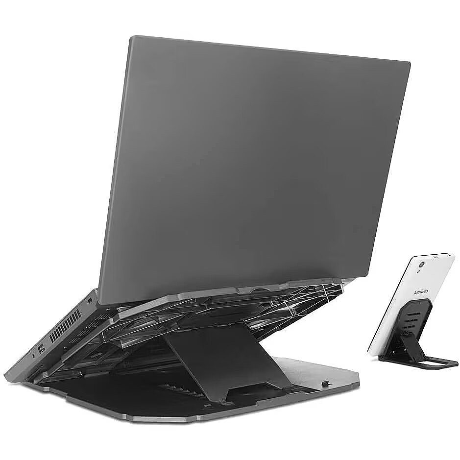 Technical details > Other features - The Lenovo 2-in-1 Laptop Stand was designed to solve two frustrating distractions in one: laptop overheating and painfully poor ergonomics. The sturdy, non-slip stand allows you to ergonomically angle your laptop and phone to prevent aches and tension, while ventilation holes improve your laptop’s cooling performance.