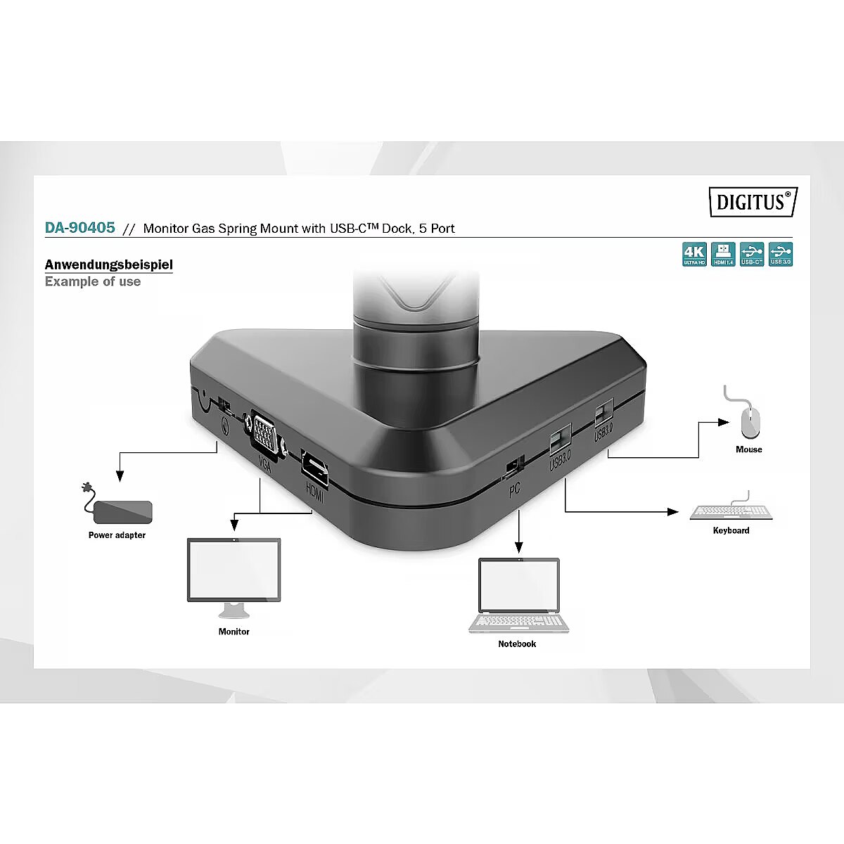 Name - Digitus Smart Monitor Mount (black, docking station, HDMI)