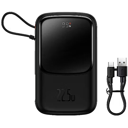 Baseus Qpow PRO Powerbank with cable, 10 000 mAh, Black
