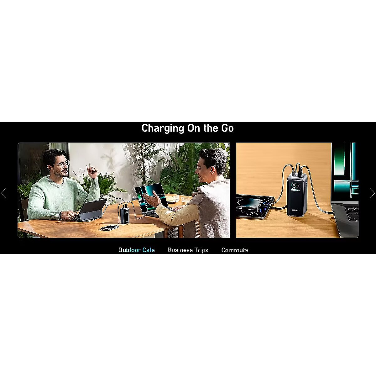 LongDesc - - 200W Total Output: Equipped with two high-powered USB-C ports and one USB-A port totaling 200W output, quickly charge two laptops simultaneously at 100W each for maximum efficiency.- Lightning-Fast Recharge: The 100W rapid recharge via the USB-C port enables the power bank to be fully recharged in 1 hour and 15 minutes.- Power On the Move: With a compact size of 4.9 × 2.1 × 1.9 inches, the 20,000mAh power bank is designed to fit seamlessly into your bag, making it convenient for travel and ensuring you always have reliable power on the go.- Get Real-Time Information: Stay informed with the smart digital display that provides real-time information on remaining battery capacity, power input, and power output, giving you complete control and visibility over the power bank