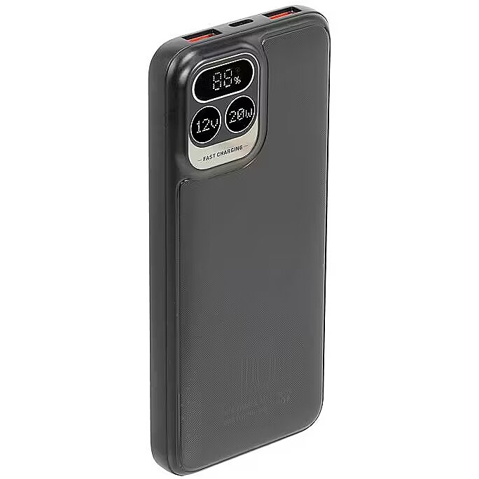 Description - VA2511 (10000 mAh), black RUS, QC/PD 20W portable battery with LCD Product Features: • 10000 mAh rechargeable battery • Fast Charge Iphone - support 20W charging mode • Fast charging indicator • LCD shows the remaining capacity, charging voltage and power Charge up to 4 times faster than conventional chargers! Support : Power Delivery 20W , QC3.0 and other popular fast charging protocols. USB-C input / output You can use USB-C socket to charge devices and recharge battery itself. Emergency laptop recharging via USB-C Specification: Li- Polymer battery: 3.7V 10000 mAh 37 Wh • Input: Type-C 5V 2A / 9V 2 (Support QC 3.0/PD 3.0) • Output: USB1 5V 3A / 9V 2А / 12V 1,5А (Support QC 3.0) USB2 5V 3A / 9V 2А / 12V 1,5А (Support QC 3.0) Type-C 5V 3A / 9V 2,2А / 12V 1,66А (Support PD 3.0) • Size: 149x67x17 mm Weight: 225 g.