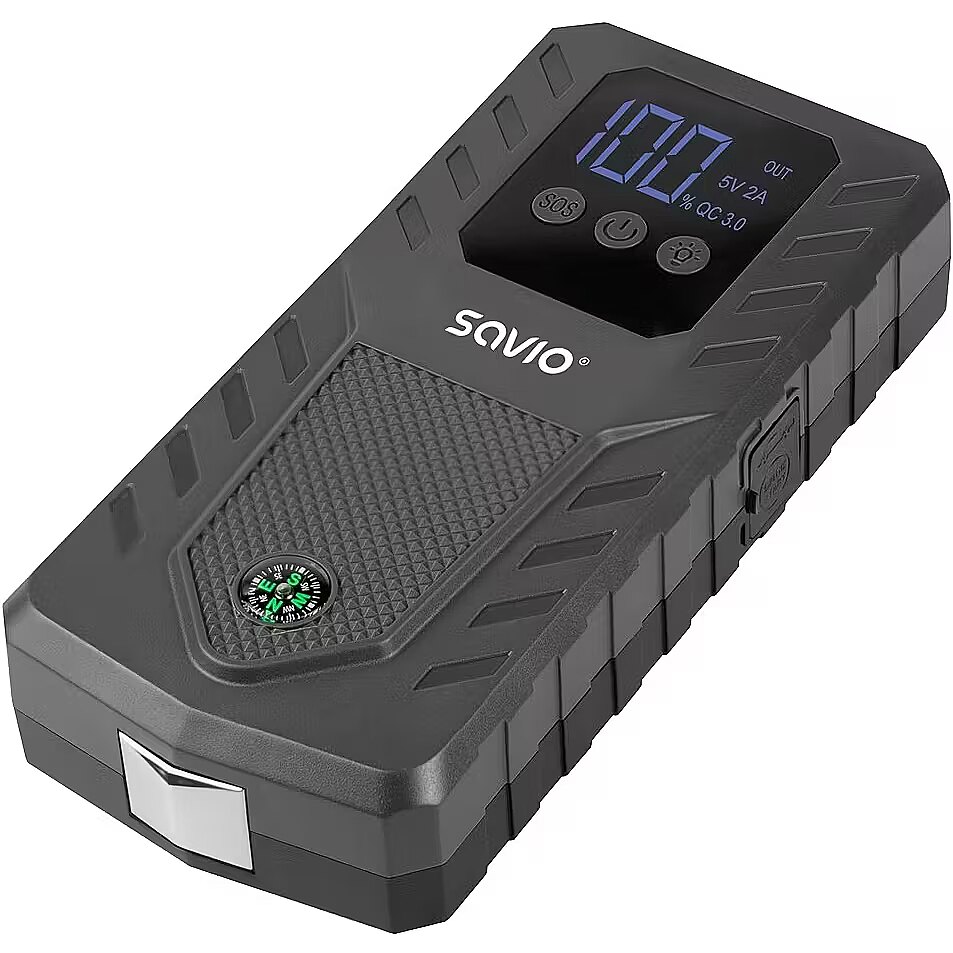 description_en - The SAVIO JS‑01 Battery Starter is a compact, powerful jump starter designed to provide up to 1000 A peak current and 500 A working current for starting vehicle engines with a depleted battery. Powered by an internal rechargeable battery, the JS‑01 delivers a reliable power boost in roadside emergency situations, making it suitable for cars, motorcycles, boats, and other vehicles.