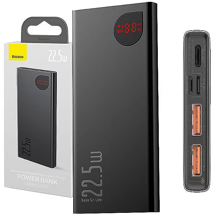 description_en - Now you can conveniently charge your devices wherever you go. The 10,000mAh Baseus Adamant powerbank supports various fast charging protocols and works with up to 22.5W of power. It is equipped with a digital display and is lightweight and compact enough to accompany you almost anywhere - even on a plane.