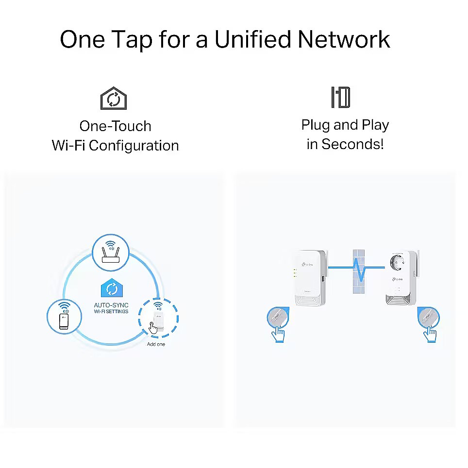 With the Next-Gen G.hn 2×2 MIMO, the PGW2440 KIT deliver superior high speed over 2 times than G.hn SISO, that supports all of your online needs. Moreover, the multiple data paths ensure more stable lag-free connections, you will never get latency stuck again. One-Touch Wi-Fi Configuration