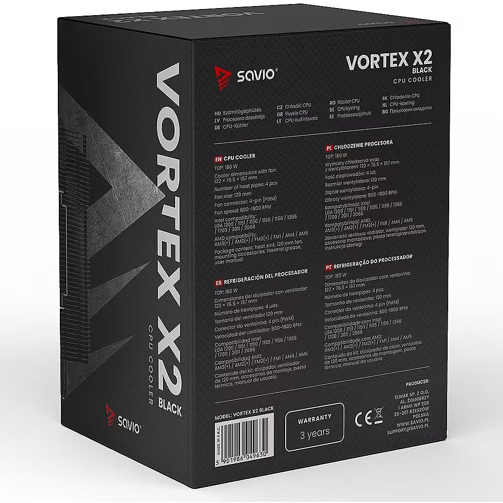 productName - SAVIO VORTEX X2 BLACK CPU Cooler