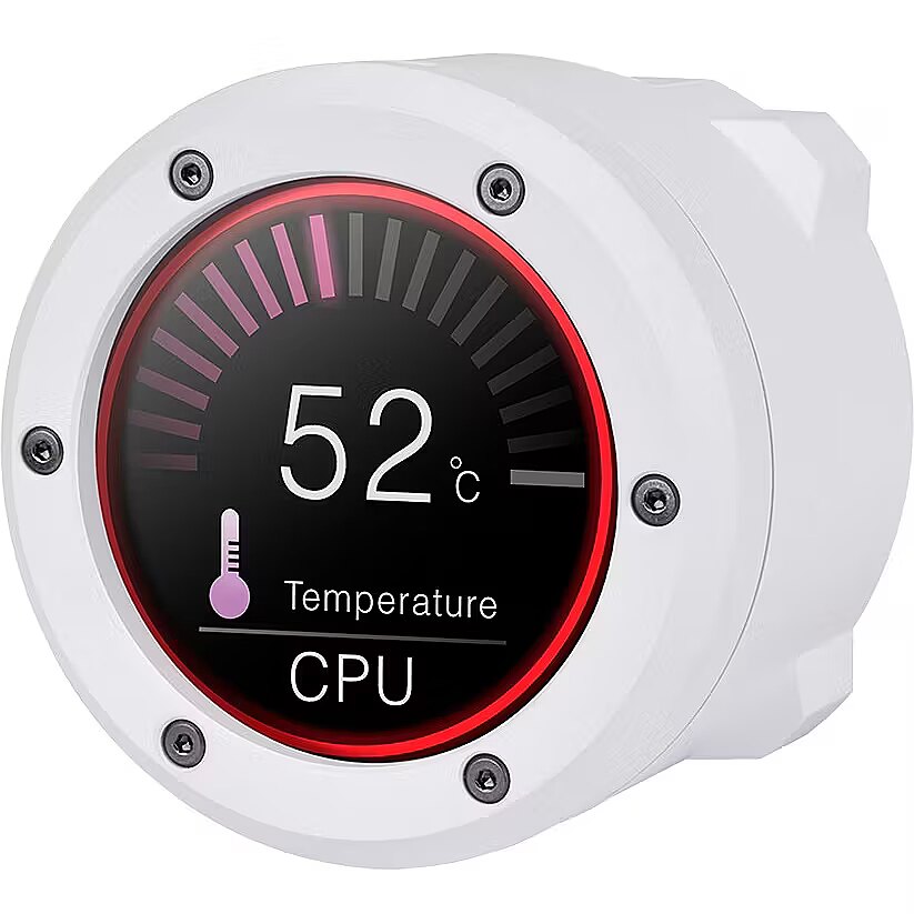 Technical_details - The Thermaltake TH280 V2 Ultra ARGB Sync All-In-One Liquid Cooler is an all-in-one liquid cooler with an LCD display. The TH V2 Ultra LCD is highly customizable. This allows real-time information or JPC, GIF, PNG, MP4, MOV and AVI files to be played. Local time and weather information can also be displayed on the display. It is also equipped with CT140 ARGB fans, which ensure excellent cooling results with minimal noise. Item no.: 100012703 Water cooling type color white EAN 4711475640382 Manufacturer no. CL-W406-PL14SW-A Type of water cooling set Use for CPU Suitable sockets 1150, 1155, 1156, 1700, 2011, 2011-3, AM2, AM2+, AM3, AM3+, FM1, FM2, 2066, 1200, AM5 Fastening screwed Volume 34.7 dB Equipment LED lighting LED lighting Yes, addressable RGB header Total depth: 27 mm RGB standard AURA Sync, Mystic Light, RGB Fusion, RGB LED Speed 500 to 1,800 rpm Material heat sink copper Flow rate 84.32 cfm Air pressure up to 3.02 mm/H2O Radiator size 2x 120 mm Pump input voltage 12 volts System Closed system, maintenance-free Feature CPU DISPLAY: Rated voltage: 5 V, input: 1.15 W, 5.33 cm (2.1”) TFT-LCD, resolution: 480x480 (RGB) px, interface: Micro USB to USB (9PIN), compatibility: Windows 10, 11 Dimensions Fan1 quantity: 2 pieces, width: 140 mm, height: 140 mm, depth: 25 mm