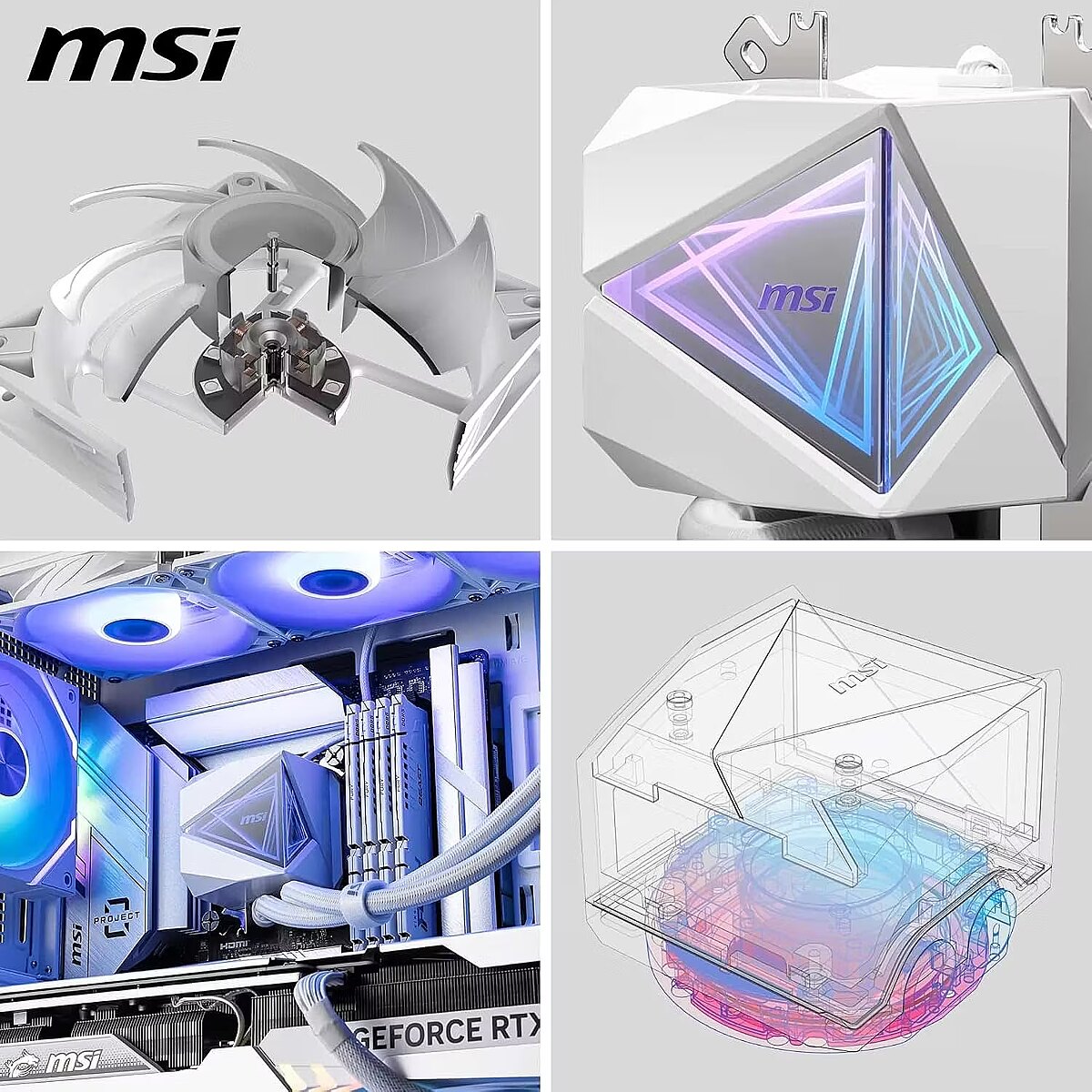 LongDesc - The MSI ARSENAL GAMING (MAG) series is engineered to give gamers the edge they need to dominate on the virtual battlefield. Inspired by the rugged durability and unwavering reliability of military-grade equipment, the MAG series is built to provide an unwavering defense in every gaming scenario.However, MAG isn't just about performance; it's a design language that conveys ruggedness and toughness, embodying the very essence of the MAG style. For gamers who are determined to dominate their digital battlegrounds, the MAG series is here to stand with you, establishing the ultimate defense.Design ConceptMSI's new MAG CORELIQUID I SERIES liquid cooler draws inspiration from the strong, angular cuts of diamonds. Its design features multiple angles, complemented by a dual-sided transparent infinite mirror. This allows DIY enthusiasts to showcase the cooler's craftsmanship in various angles, enhancing the visual appeal of the infinite mirror with a multi-dimensional experience.Dual-Sided Infinite MirrorFeaturing a personalized dual-sided infinite mirror design, it allows gamers to showcase their DIY PC case in a unique style, expressing their individuality. With ARGB GEN2 lighting and MSI's exclusive control software, gamers can create a standout look, achieving the ultimate personalized gaming setup.Intuitive AccessoriesThe clear part layout effectively separates Intel and AMD components, making installation a breeze for gamers. Plus, the packaging includes a QR code that provides instant access to straightforward installation guides, ensuring you get your rig up and running without hassle. The installation accessory pack allows for easy storage of remaining parts, preventing issues like missing or dropped screws after installation, as has happened in the past.In addition to being low-noise and high-performance, it differs from traditional water pump placements on the tubing or radiator, reducing overall vibration and achieving the smoothest possible water flow. This design not only enhances cooling efficiency but also makes your gaming setup stand out!High Efficiency PumpThe water pump design of the MAG CORELIQUID I series is located in the cold head and features a precision-engineered motor for more efficient water cooling operationLDB BearingLDB technology in the MAG CORELIQUID I series fans extends their lifespan by reducing friction and wear. It also lowers noise levels, improves efficiency for better airflow and heat dissipation, and ensures stable performance under various conditions.EVAPORATION PROOF TUBINGThe MAG CORELIQUID I series utilizes nylon-braided EPDM water cooling tubes, offering high and low-temperature resistance, corrosion resistance, excellent flexibility, and anti-aging properties. This design not only reduces the evaporation of the coolant but also makes it easy for players to install without worrying about bending or positioning the tubesGLOW YOUR PCSplash on some color and vibrant RGB lighting effects using MSI Mystic Light with 16.8 million colors and fancy LED effects. MSI Mystic Light provides you complete control of RGB lighting of your PC in one software.