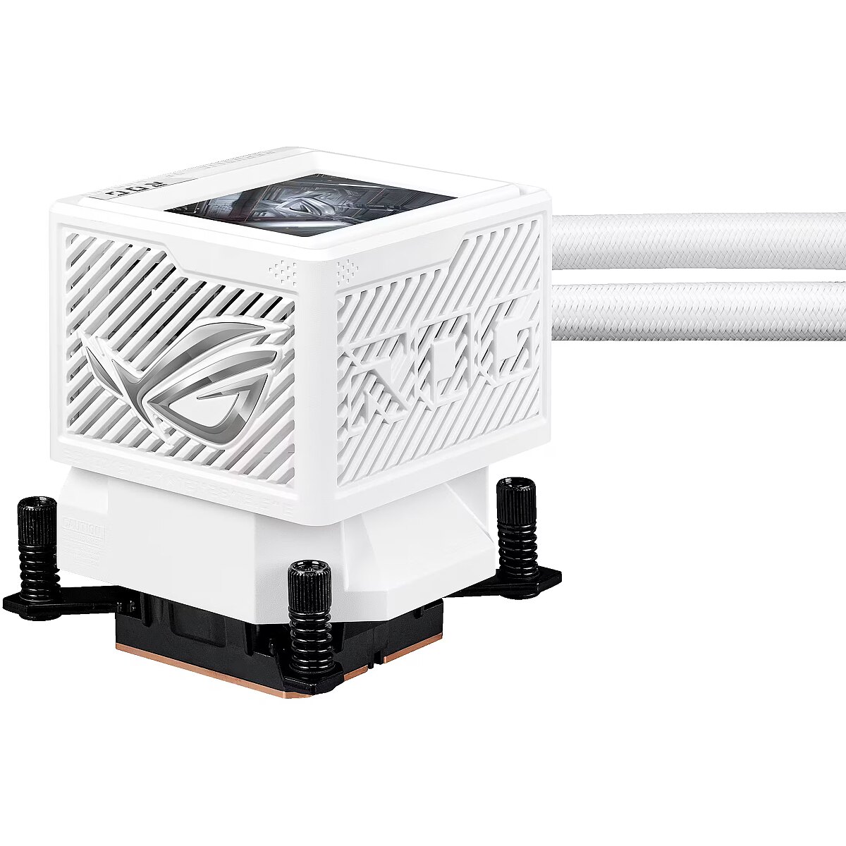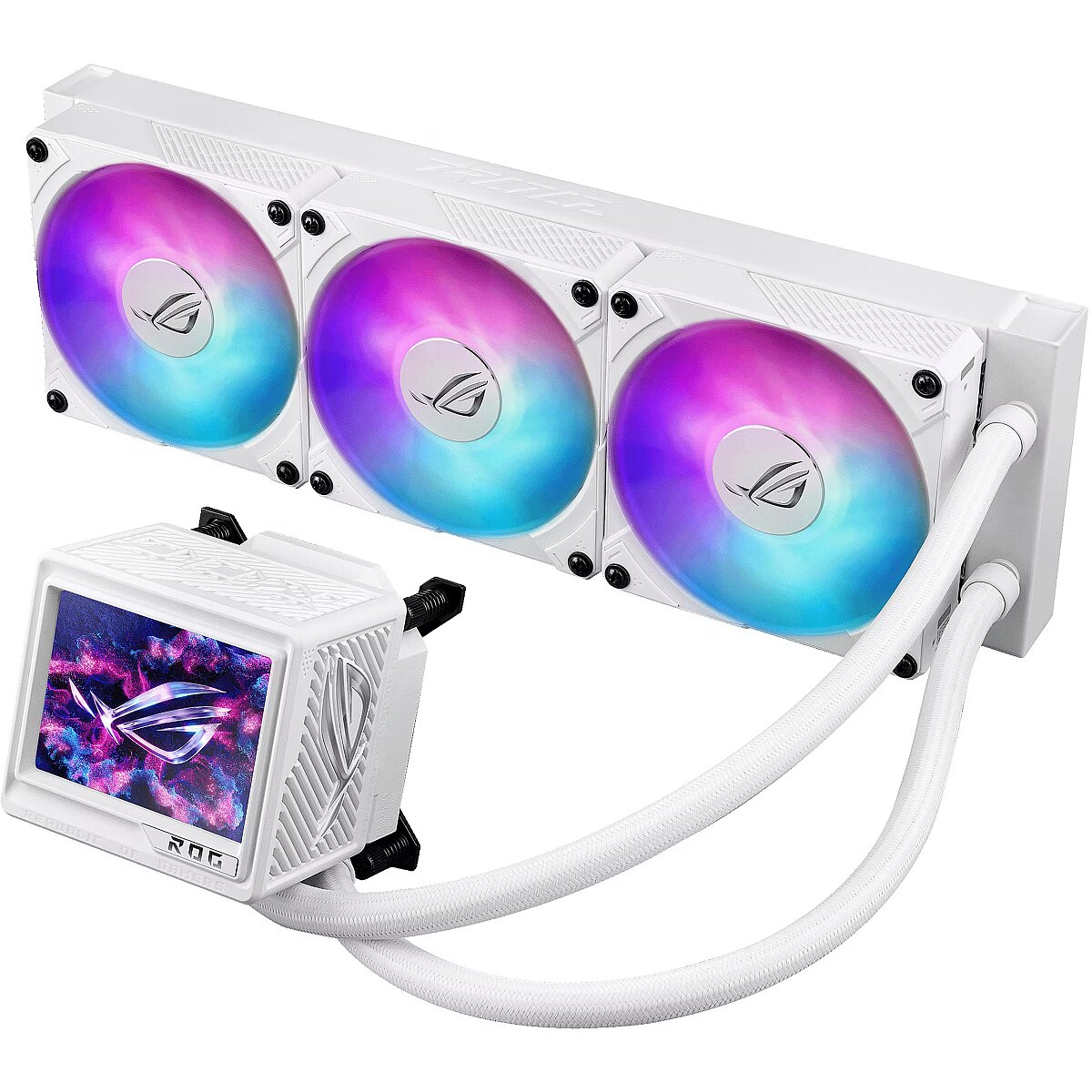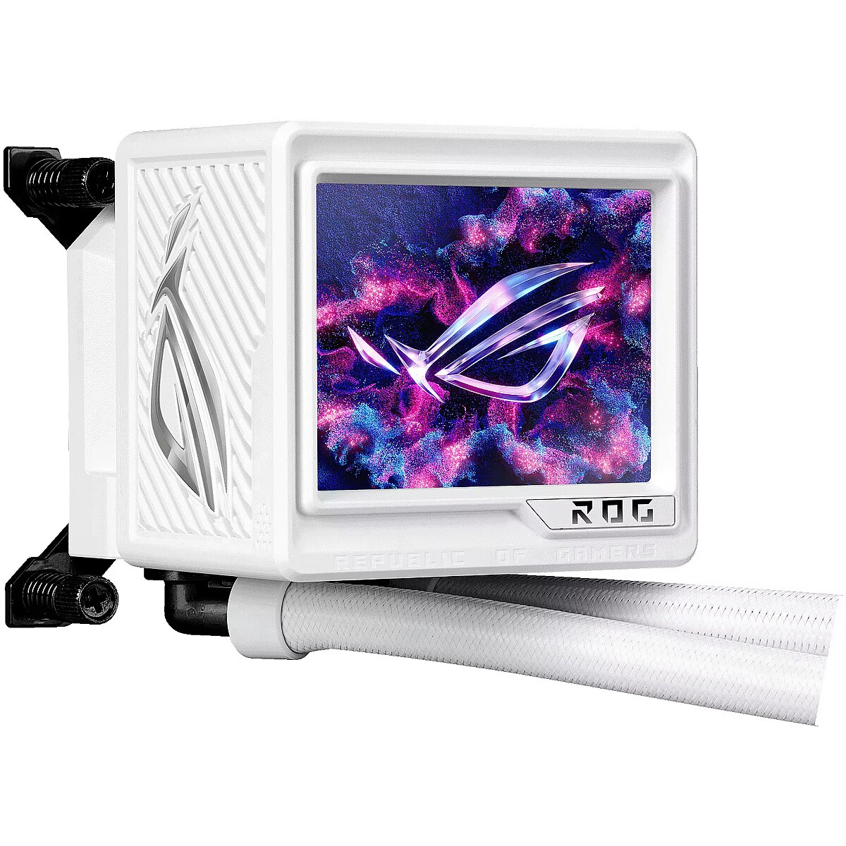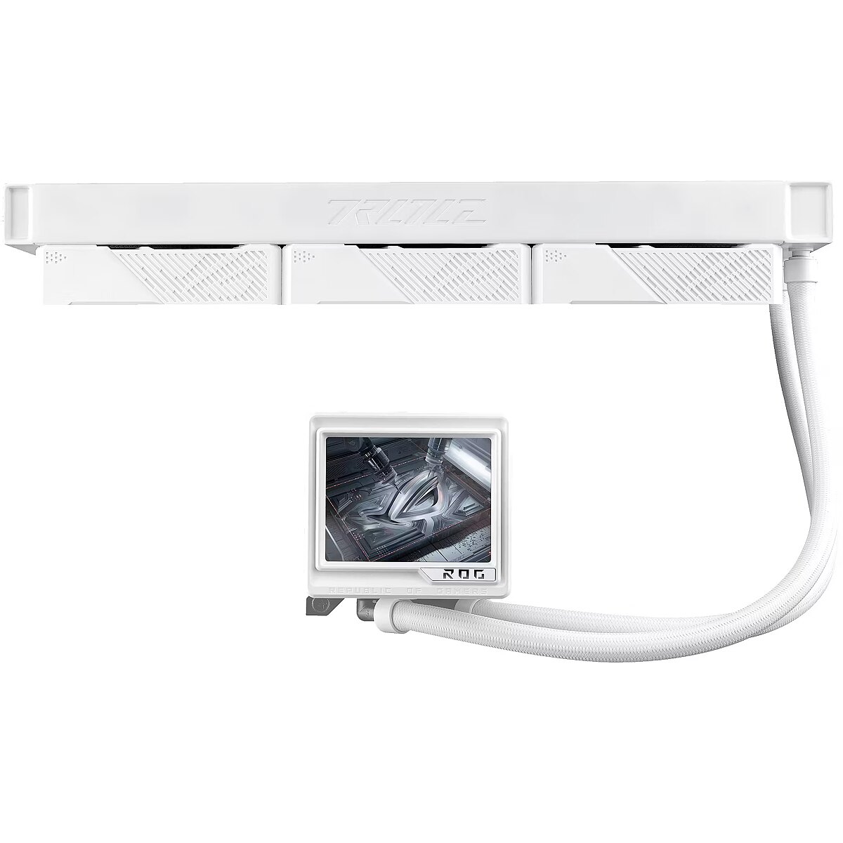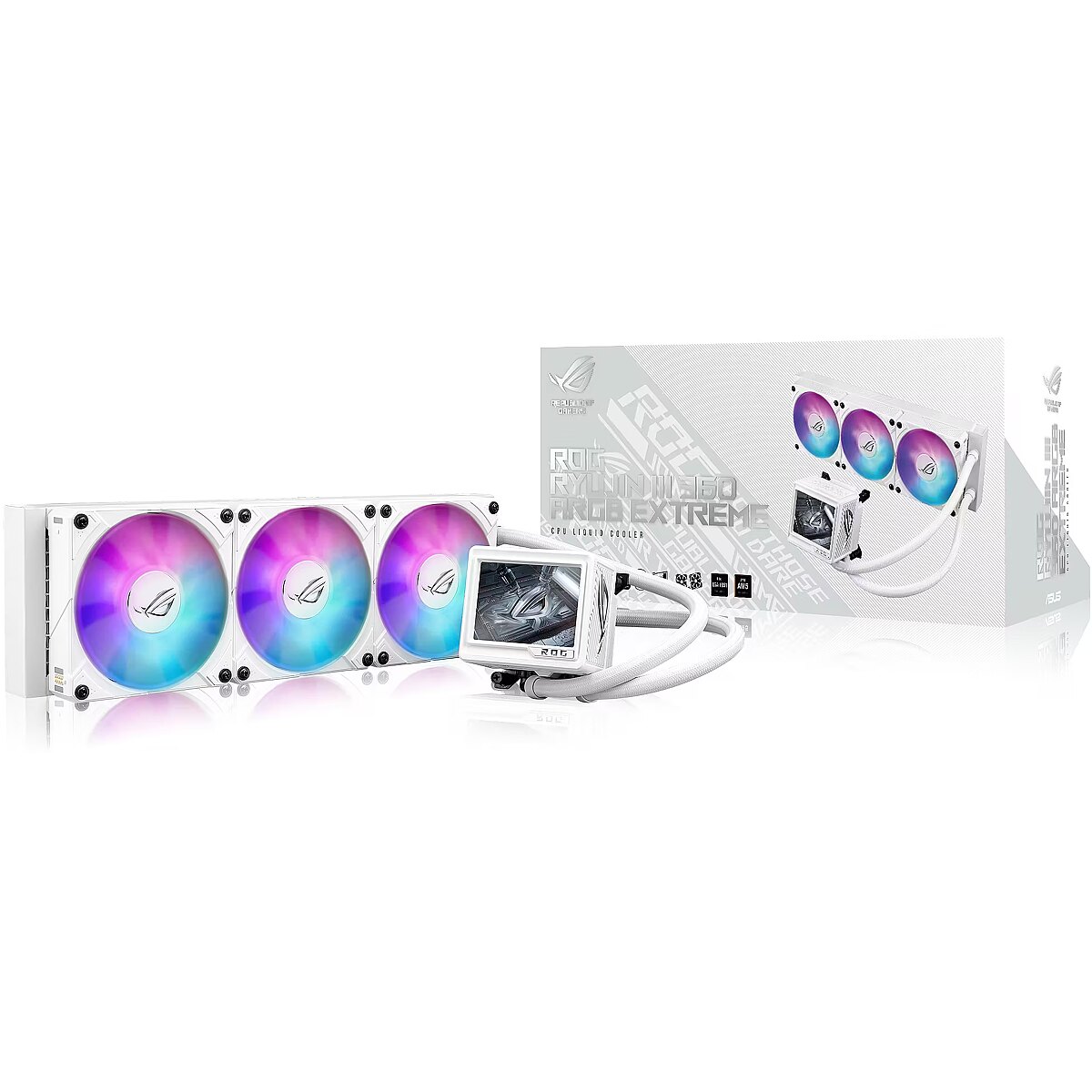 LongDesc - Experience exceptional performance with the ROG Ryujin III 360 ARGB Extreme White Edition, featuring Asetek’s Emma Gen8 V2 pump and enhanced magnetic ROG ARGB fans to maximize the power of AMD AM5 9000 Series and Intel® Core™ Ultra Processors. This advanced cooling solution includes an embedded VRM fan for stable performance during intense tasks. With an upgraded LCD offering 480p resolution and 60Hz refresh rate, enjoy a smoother visual experience—unlock limitless possibilities with the ROG Ryujin III 360 ARGB Extreme White Edition!Optimization for Intel ProcessorsThe ROG Ryujin III 360 ARGB Extreme White Edition is specially optimized for the heat zones of Intel® Core™ Ultra processors (Series 2). The combination of its adjustable bracket, a new pump and upgraded ROG fans can reduce CPU temperatures by up to 7.5%, compared to the standard ROG Ryujin III 360 ARGB.Revolutionary Fan DesignEnhanced Fan PerformanceThe significantly upgraded ROG ARGB Fans provide high airflow and static pressure with noise optimization, offering users the best balance between performance and acoustics.Thickened ROG ARGB FansThese fans have been thickened to 30 mm for high airflow and static pressure with noise optimization, maximizing cooling performance while maintaining maximum case compatibility.Embedded VRM FanA larger embedded axial-tech fan improves airflow, reducing motherboard VRM temperatures by up to 36 Celsius.Full-Color 3.5” LCDThe vivid and smooth 3.5-inch display offers a stunning visual feast.System MonitoringThe 3.5-inch LCD delivers live monitoring of clock frequencies, voltages, temperatures, fan speeds and water flow, or your custom GIFs.Personalized AnimationChoose a pre-designed animation from the ROG gallery, or easily add one of your own.Custom WallpaperDo you prefer banners or clan logos? Choose one designed by ROG, or put your own text or JPEG file on proud display at the heart of your rig.Extensive CompatibilityThe ROG Ryujin III series features 400 mm of tubing and is compatible with a wide range of Intel® and AMD motherboard platforms, giving you ample processor and build flexibility.