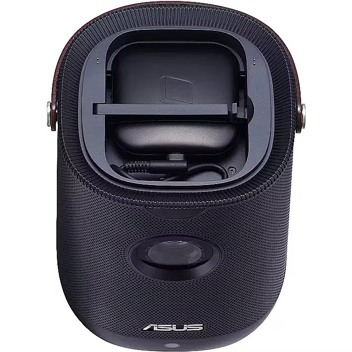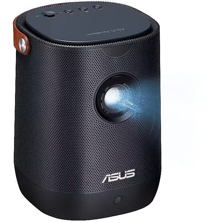 LongDesc - ASUS ZenBeam L2 Smart Portable LED ProjectorEffortless Cinema, ANYWHEREThe ZenBeam L2 gives it an elegant design that’ll never be out of place. With such versatility at your command, you’ll be able to bring it with you everywhere. Its sturdy leather carrying handle offers an understated touch of luxury. Subdued blue and charcoal finishes lend the device an air of professionalism that’ll fit right in with the tech you use for work and the modern décor of your home.