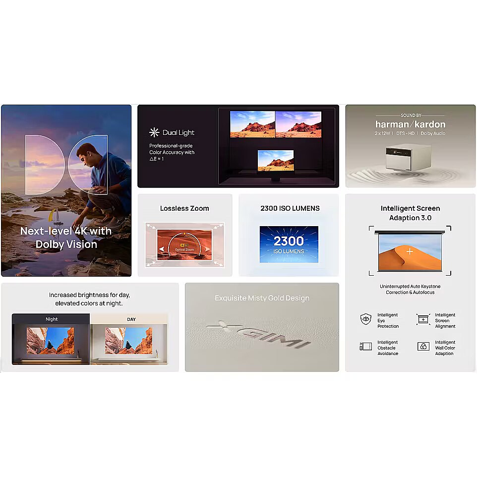 description_en - 4K with Dolby Vision: Experience unparalleled brightness, exceptional color accuracy, and premier image quality for a true Dolby Vision theater experience. 2300 ISO Lumens: HORIZON Ultra features ultra-high brightness plus lifelike color, providing incredible image detail morning, day, and night. Dual Light Technology: Pairing LED and Laser technology, HORIZON Ultra delivers the ultimate color accuracy, brightness, and color gamut for a visual experience you’ll never forget. Intelligent Screen Adaption 3.0: Our upgraded ISA technology smoothly optimizes projector environmental adaptability, easy usage, wall color adjustment, optical zoom, and other ISA features like never before! Dual 12W Harman Kardon Speakers: Combined with DTS Studio Sound Technology, HORIZON Ultra’s two full-range built-in speakers provide three-dimensional surround sound and the unforgettable theater experience you deserve. Next-level 4K with Dolby Vision